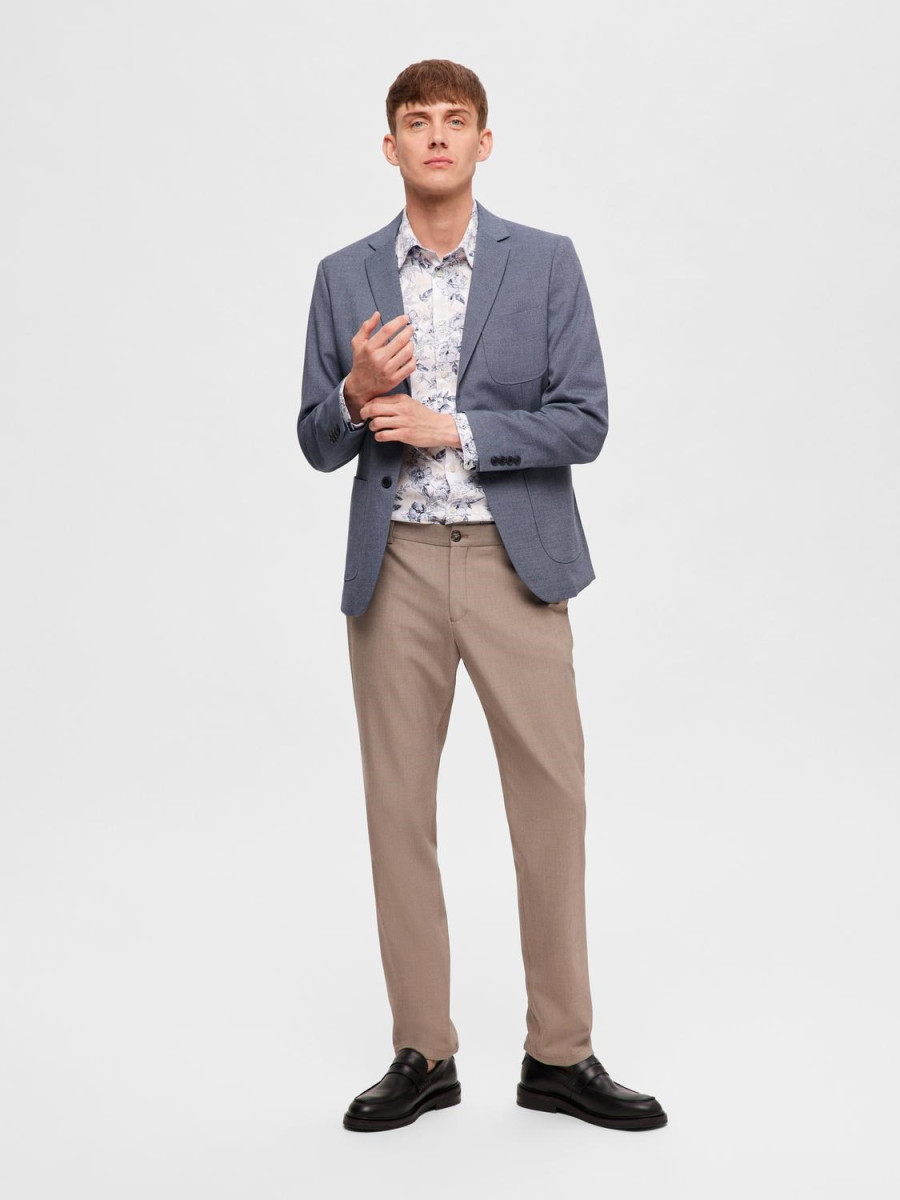 Click/Touch to zoom image -Detail Type: Blazer. -Closing/Fly: 2-button fastening. -Cuff type: Button cuffs. -Extra details: - - Double slit at back - - Button hole on lapel. -Lining: Polyester lining. -Pocket hand: Patch pockets. -FIT: Slim Fit. -NECK TYPE: Notch Lapel.
