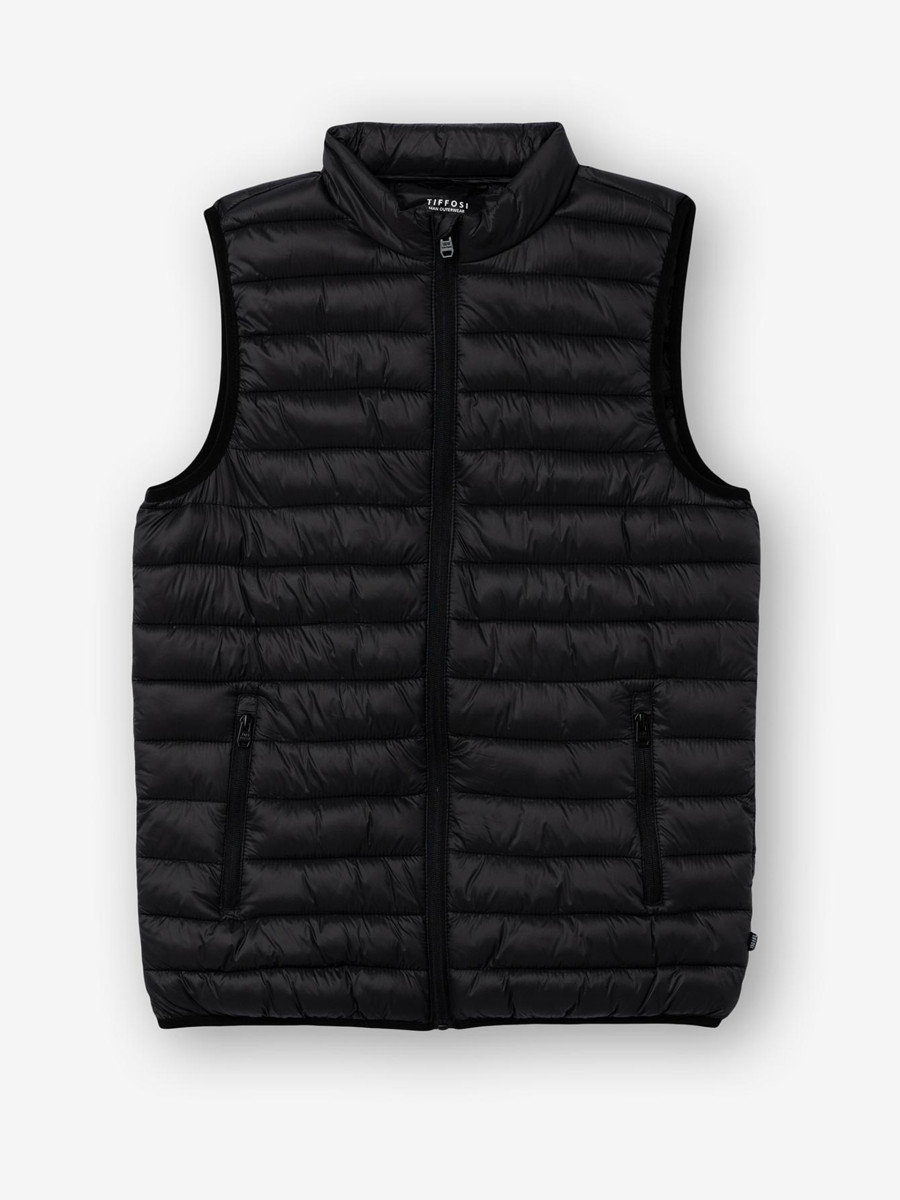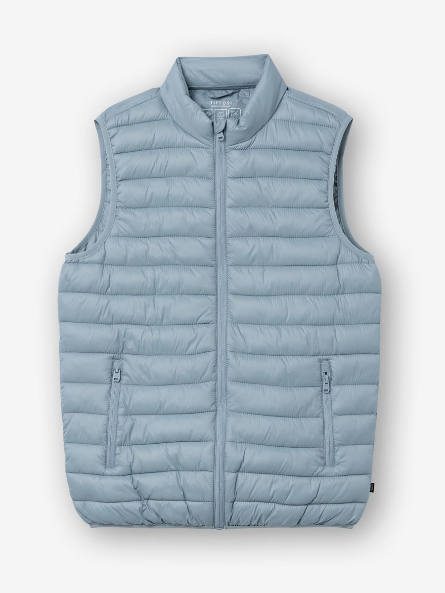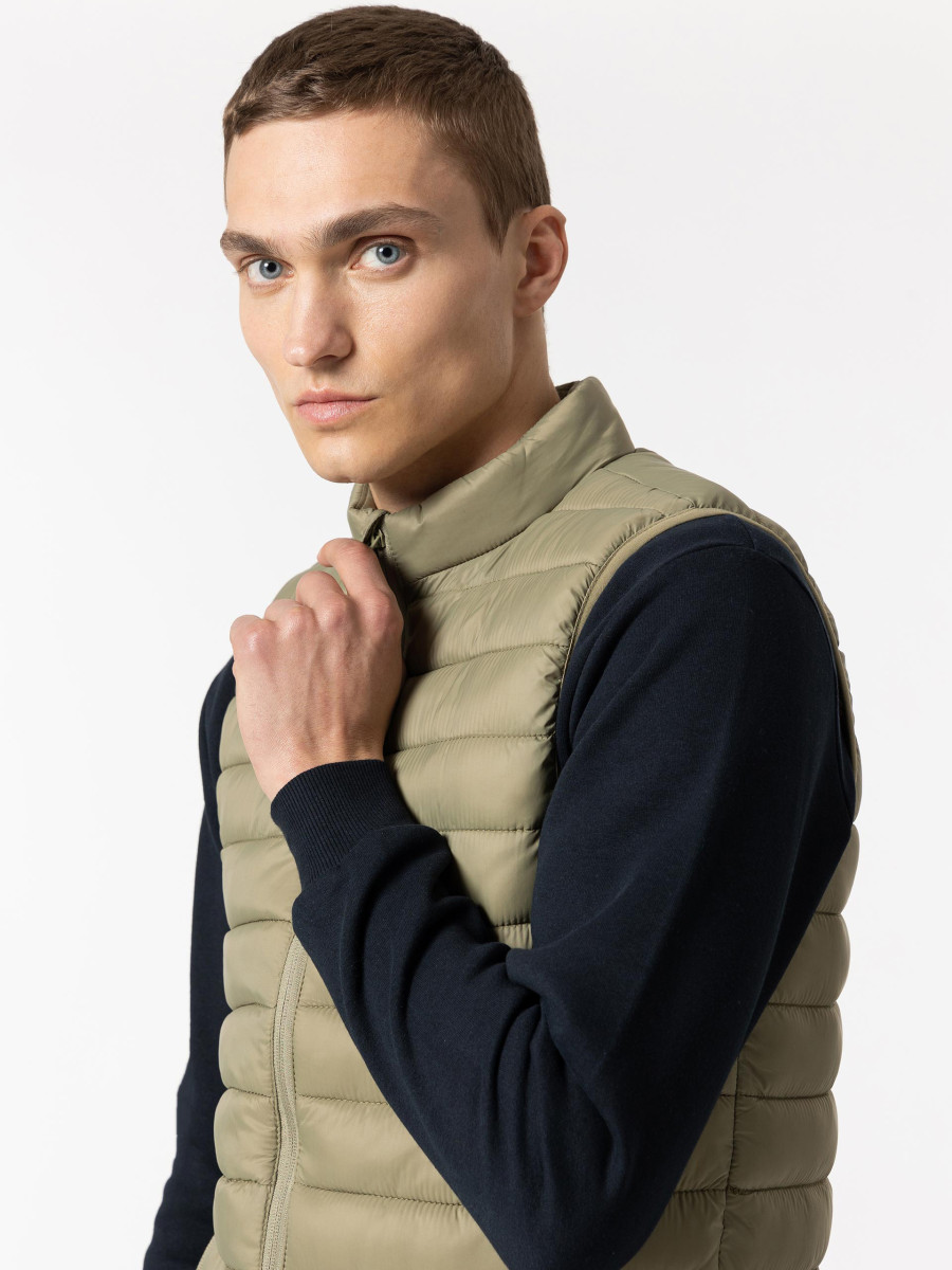 Click/Touch to zoom image Bodywarmer with stand-up collar and sleeveless. Side pockets. Front zipper closure. Inside pocket. Model height: 188 cm | Size: M
