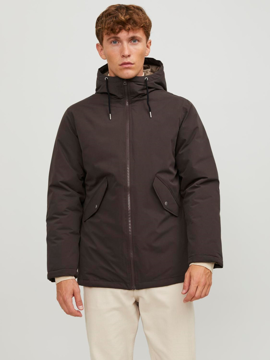 Click/Touch to zoom image Dull Surface fabric. -Product Type: Parka. -Neck: Hood with String Regulation. -Sleeve: Long Sleeves (L/S). -Cuffs: Ribbed cuffs. -Closing: Fully zipped storm placket. -Length/Size: Short. -Lining: Recycled polyester lining for a comfortable feel. -Padding: Synthetic fibre down padding for a light feel and warmth. -Functionality: Water-resistant.