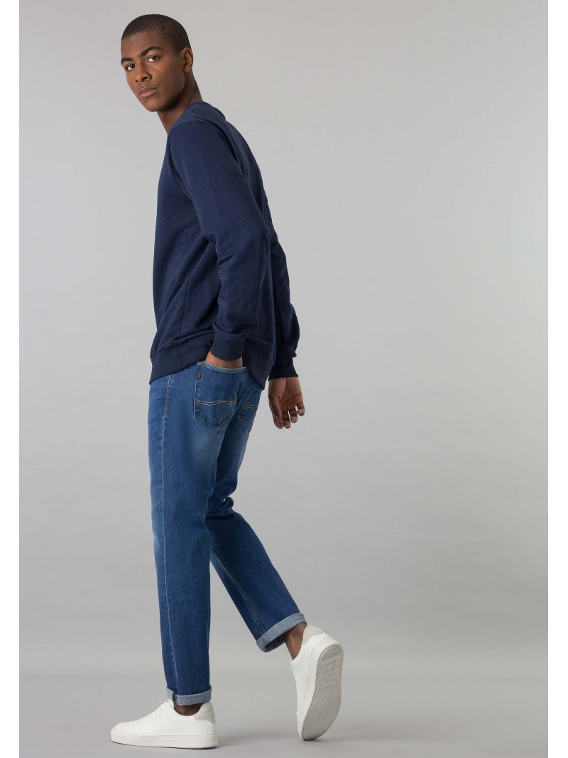Click/Touch to zoom image Comfort fit jeans with five pockets. Front zipper and metal button closure. Model height: 188 cm | Size: 32.