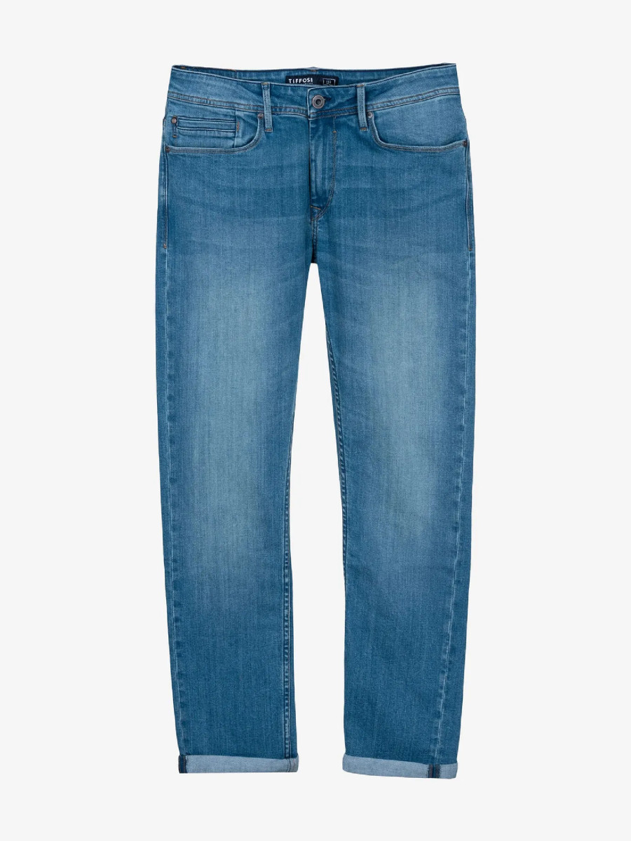 Click/Touch to zoom image Comfort fit jeans with five pockets. Front zipper and metal button closure. Washed effect. Model Height: 188 cm | Size: 32