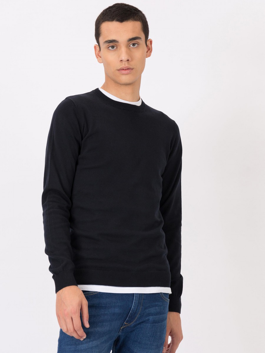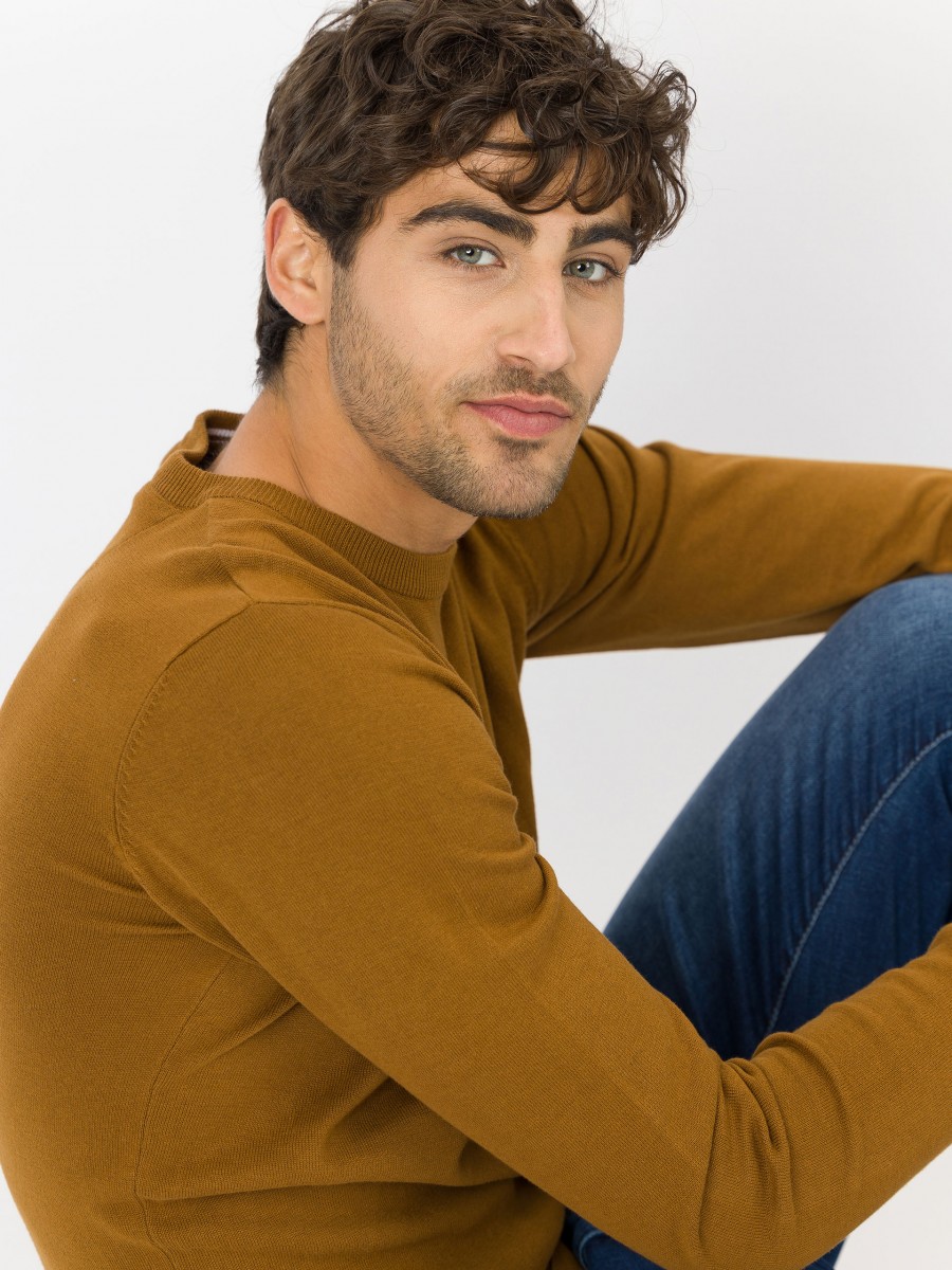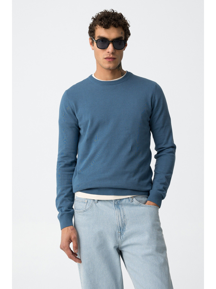 Click/Touch to zoom image Knitted sweater with round neck and long sleeves. Model height: 188 cm | Size: M.