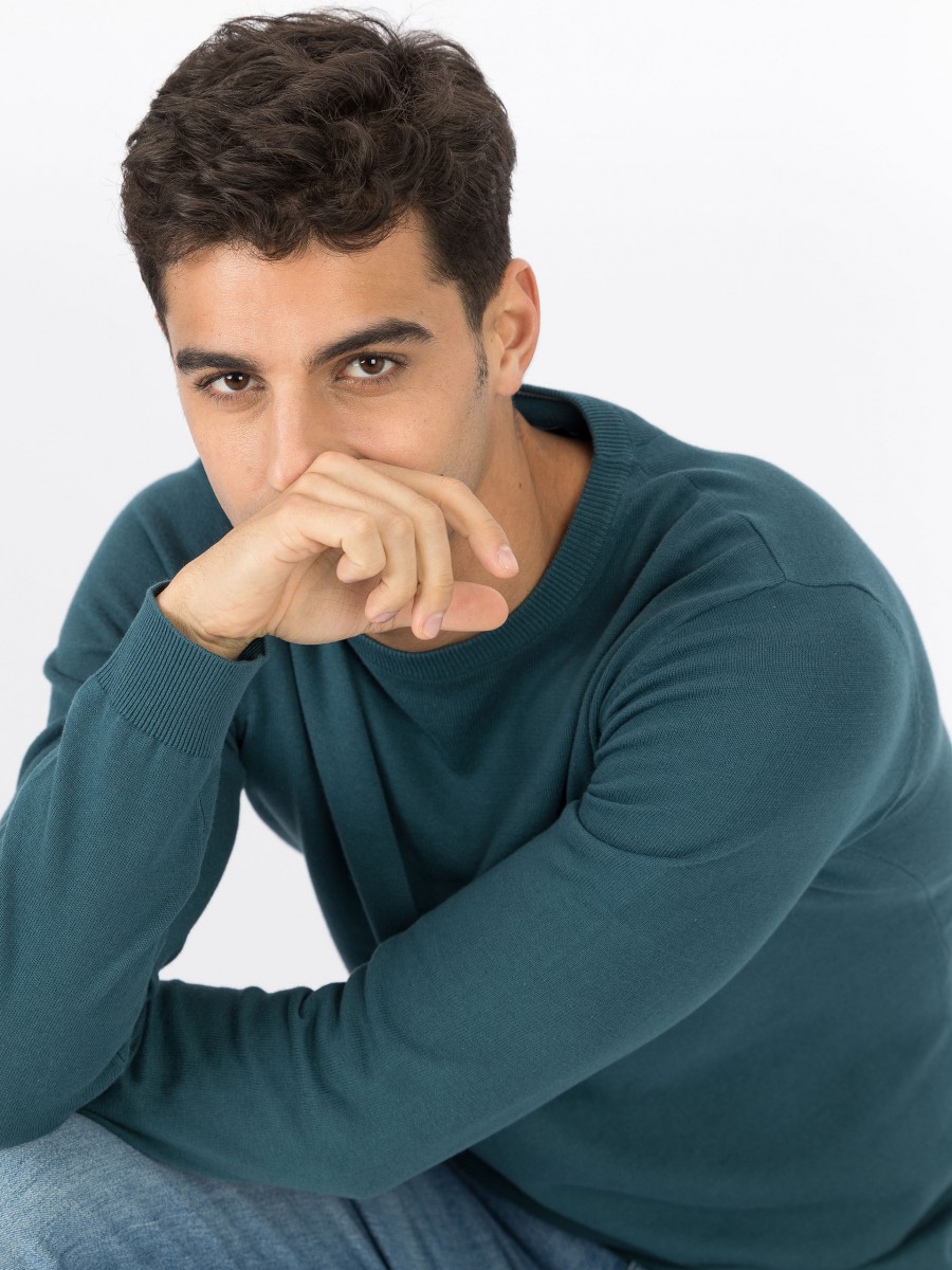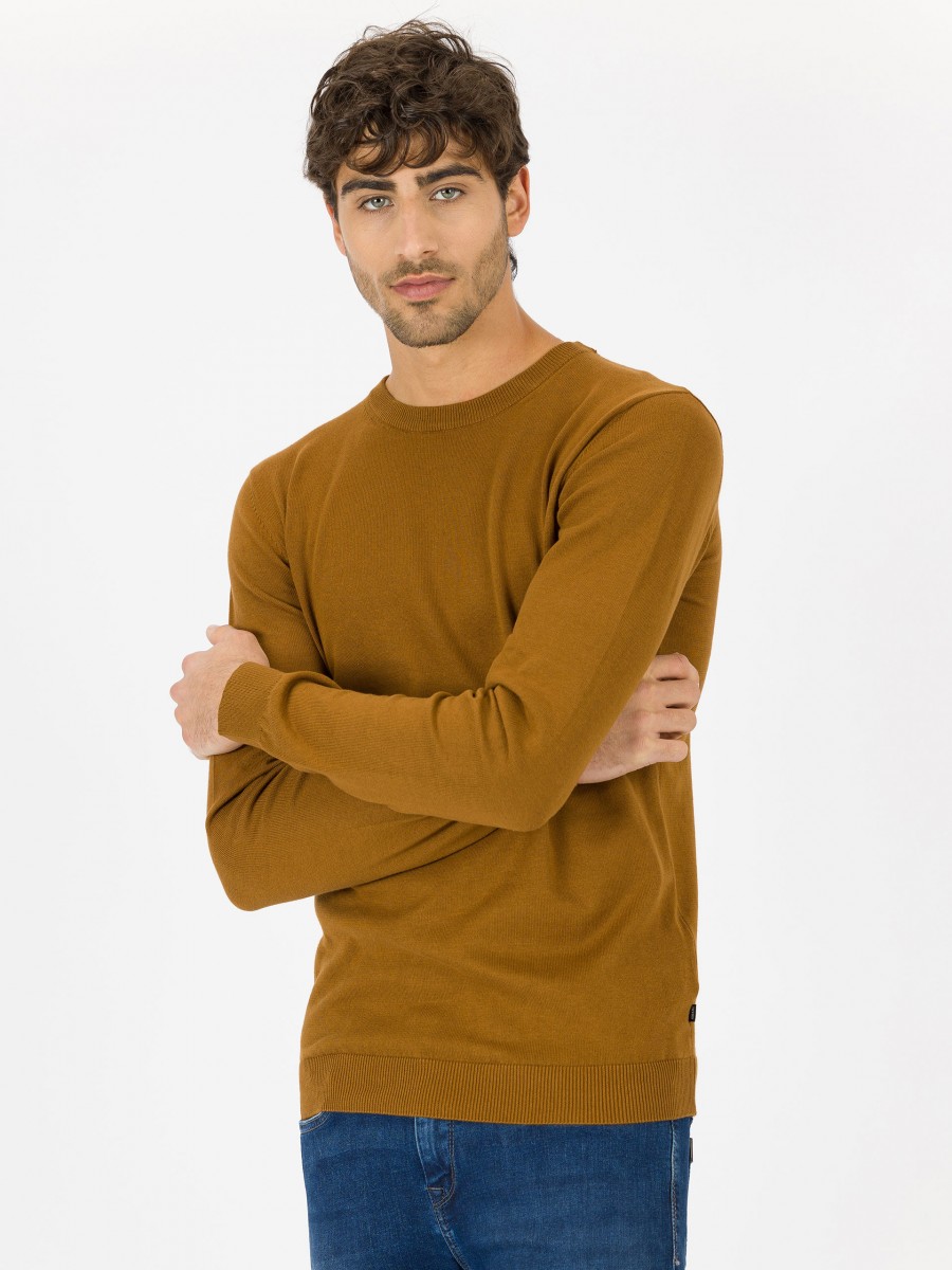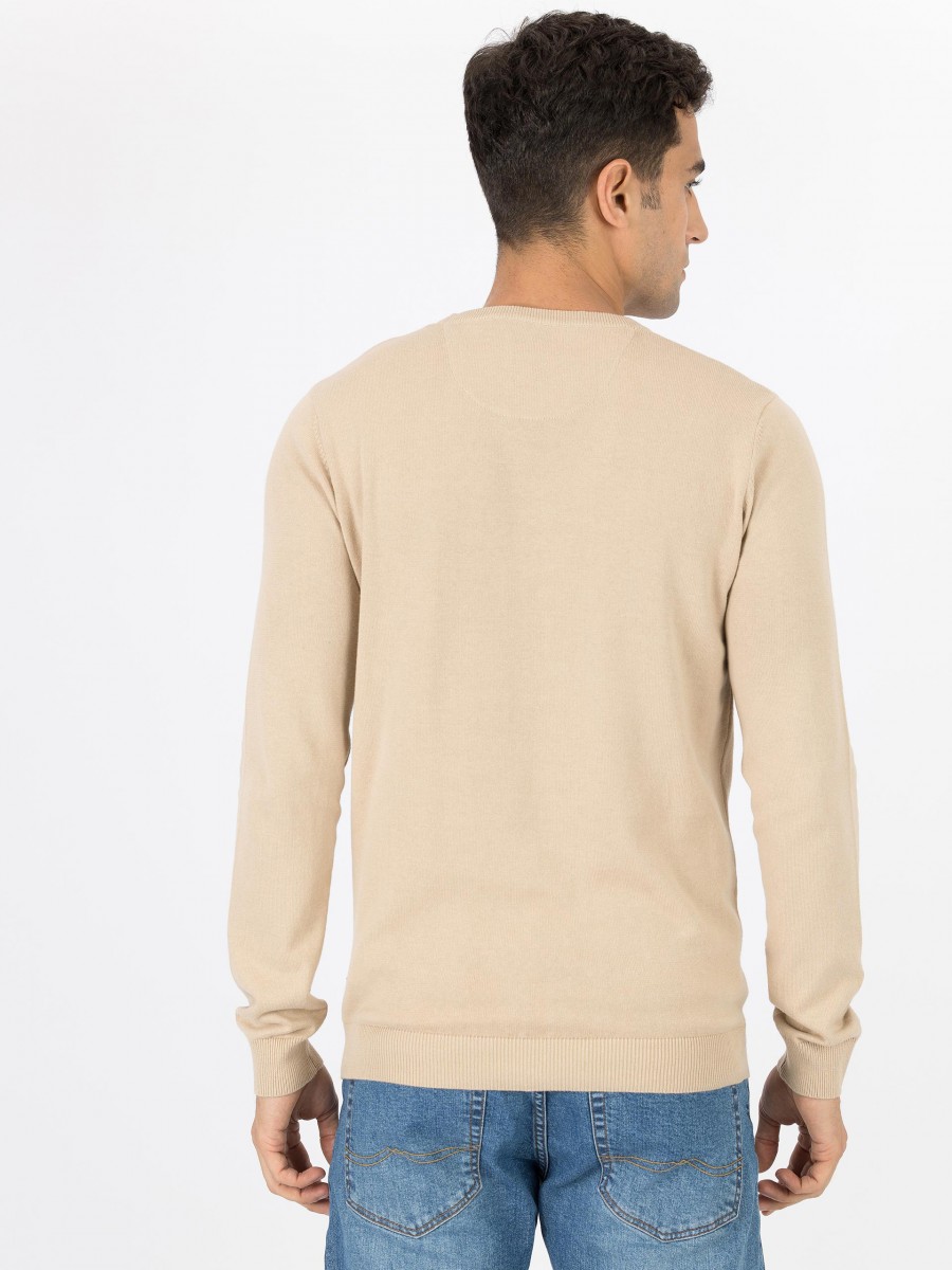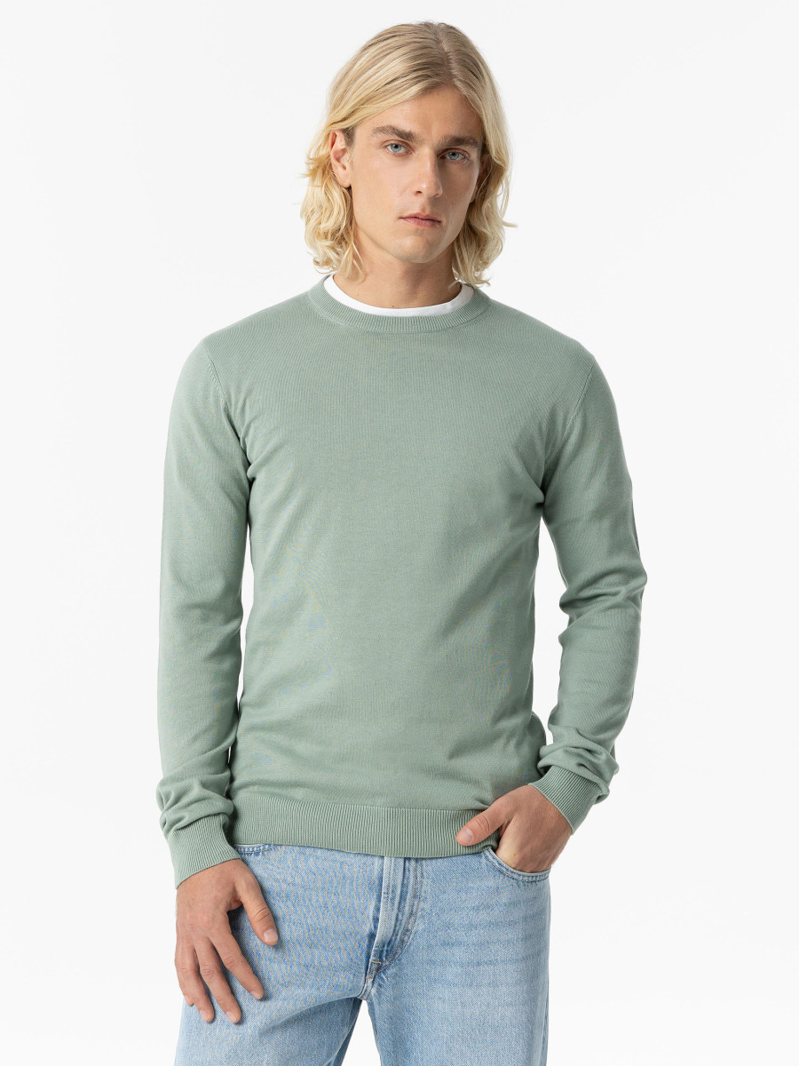 Click/Touch to zoom image Knitted sweater with round neck and long sleeves. Model height: 188 cm | Size: M.