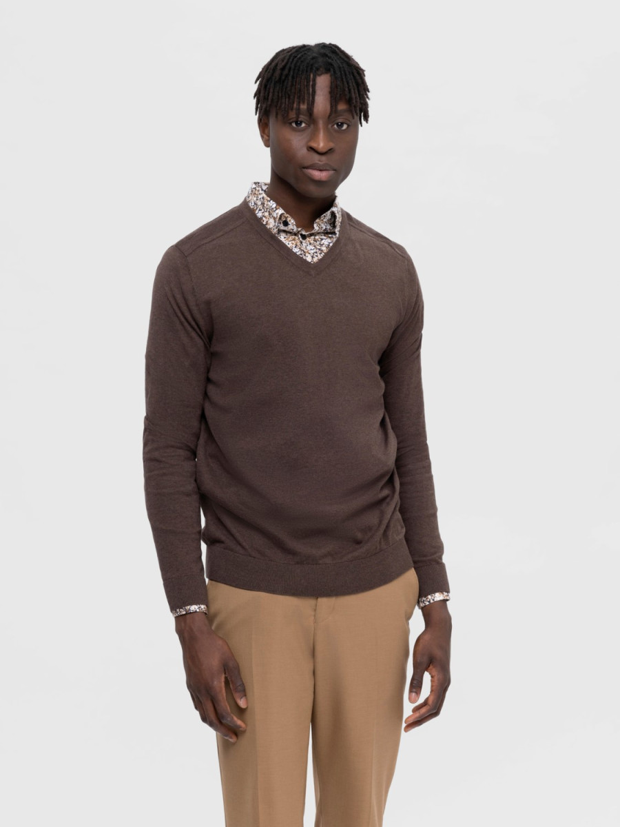 Click/Touch to zoom image -Detail Type: Knitted pullover. -Neck: V-Neck. -Sleeve: Long Sleeves (L/S). -Cuffs: Ribbed cuffs.