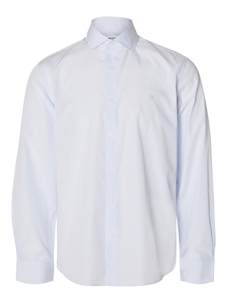 Click/Touch to zoom image -Detail Type: Checked shirt. -Cuff type: Buttoned cuffs. -Extra details: - - Curved hem - - Embroidery. -Length/Size: Regular. -Occasion/Styling: A timeless look for formal occasions. -FIT: Slim Fit. -NECK TYPE: Cut Away Collar. -SLEEVE LENGTH: Long Sleeves (L/S).