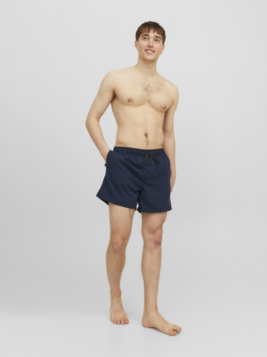 Click/Touch to zoom image -Detail Type: Swim shorts. -Fabric: A basic weave for a clean and even appearance. -Waist/Rise: Regular rise. -Extra details: Elasticated waistband. -Occasion/Styling: Swim shorts tailored to get you ready for the beach, made with recycled yarns. -Fit: Classic regular fit from rise and down to the leg opening. It's perfect for the guy who wants some extra room -Fit: Regular Fit.