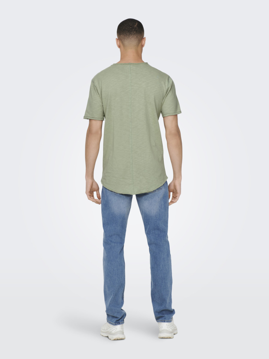Click/Touch to zoom image -Detail Type : T-shirt. -Extra details : Curved hem. -Wash Finish : Washed look. -Length/size : Cut longer than standard length. -FIT : Long Line Fit. -NECK : O-Neck. -SLEEVE : Short Sleeves (S/S).