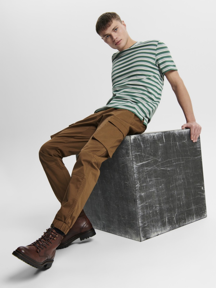 Click/Touch to zoom image -Cargo pants with side pockets. -Cuffs below. -Closure at front. -Belt loops. -Closed back pockets. -Stretchy material. -Inseam: 83 cm in size 32/34. -The model is wearing size 32/34.