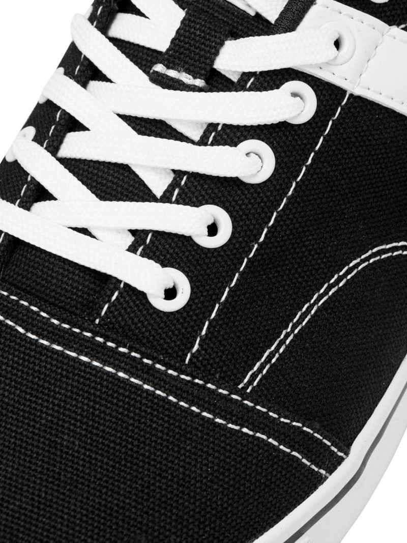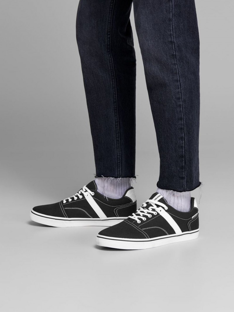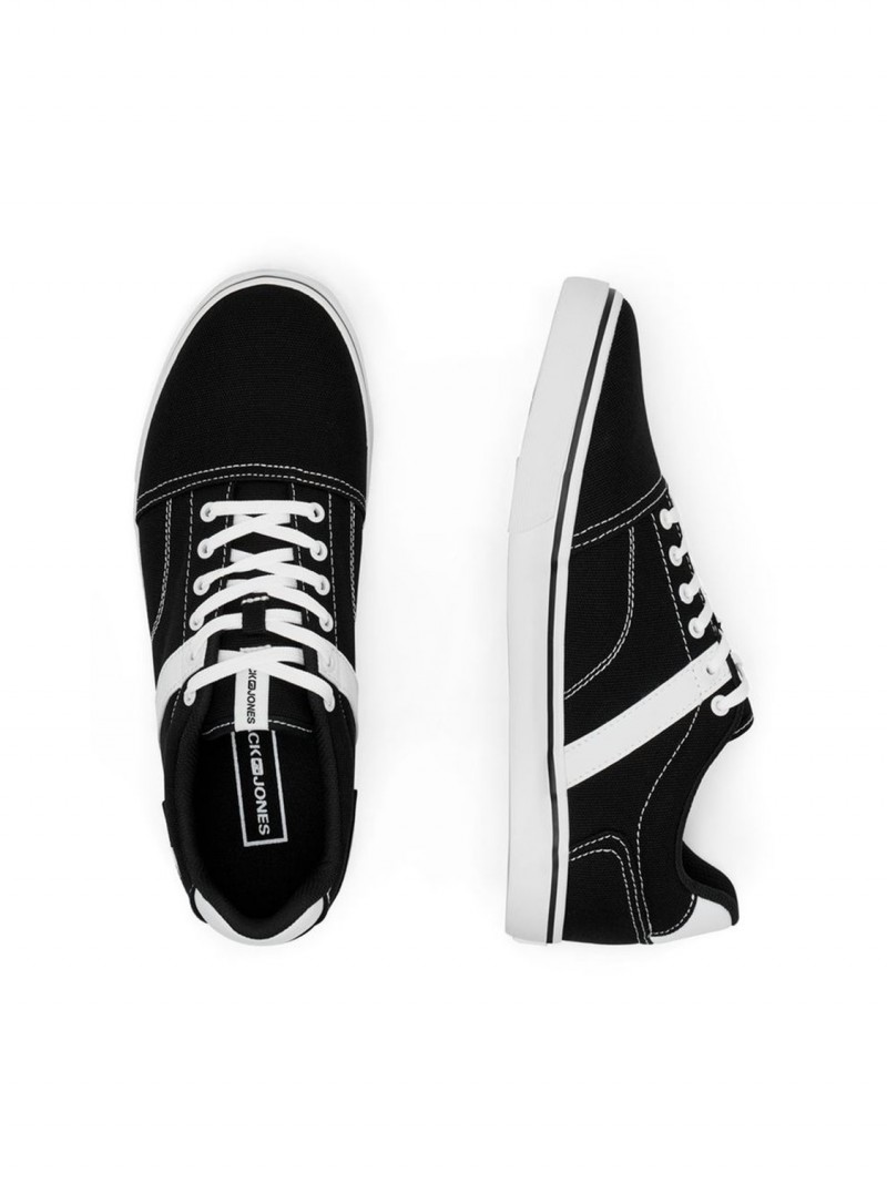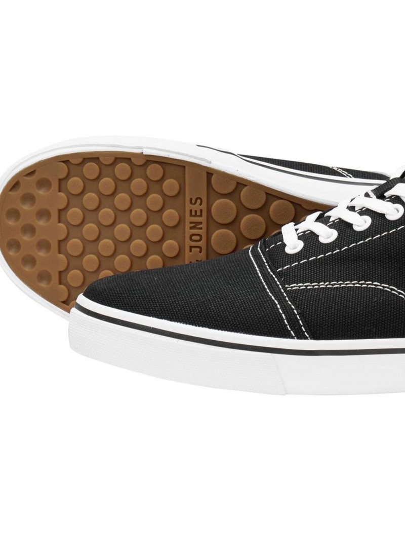 Ampliar A. Upper: 20N Heavy Canvas Colour: Anthracite B. Heel tab, qtr stripe: Matt PU Colour: Bright white Lace: 6mm flat nylon lace Colour: Bright white Eyelets: Flat metal matt finish Colour: Bright white Tounge label: Woven Colour: Bright white with Anthracite logo Flaglabel: Woven Colour: Bright white with Anthracite logo Lining: BK Textile Colour: Anthracite Insock: BK Textile Colour: Anthracite with Bright white logo Foxing: Ref Sample sent Colour: Bright white Foxing stripe: Ref Sample sent Colour: Anthracite Toe bumper: Ref Sample sent Colour: Bright white Heel patch: Moulded patch Colour: White base with Anthracite logo Outsole Ref JJ-017 Colour: Jack & Jones Natural Gum Stitch Stitch Weight 20s Colour: Bright White