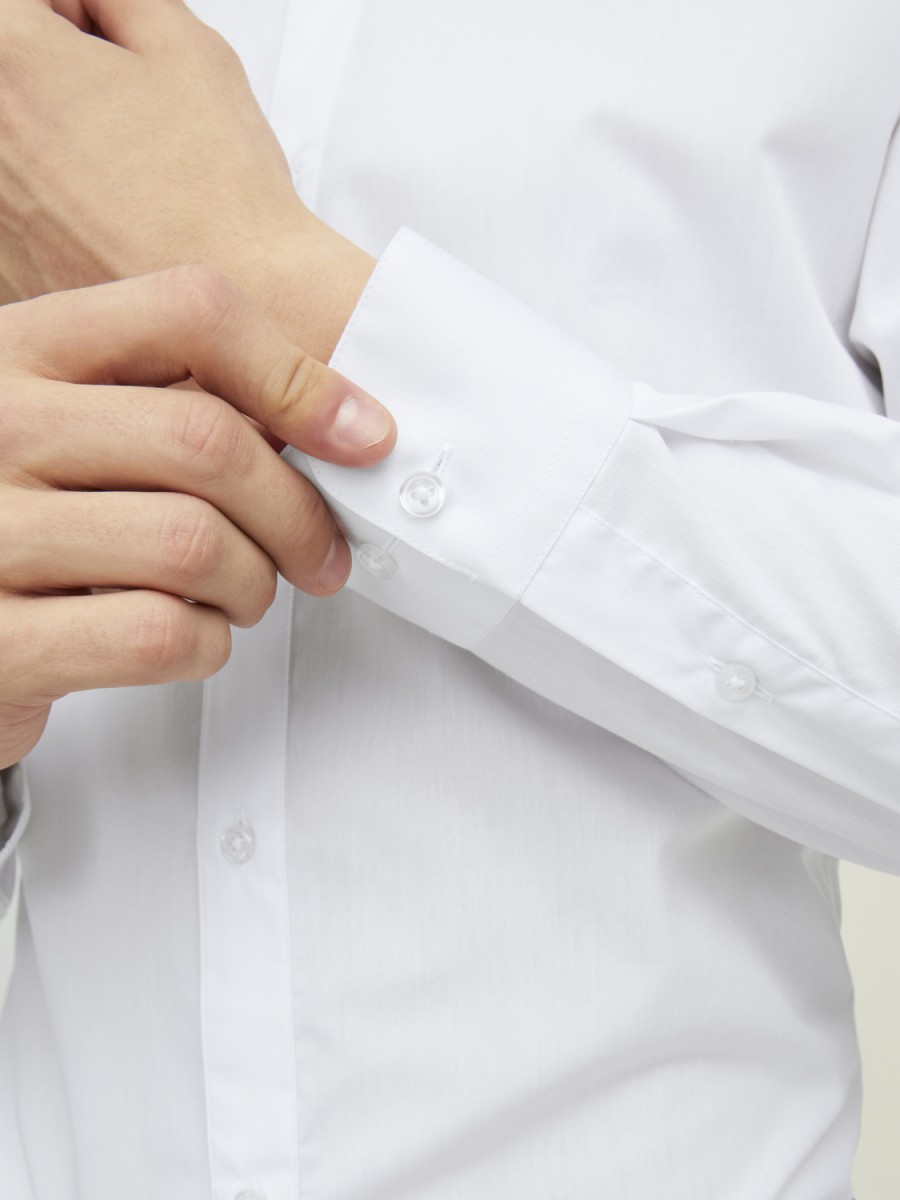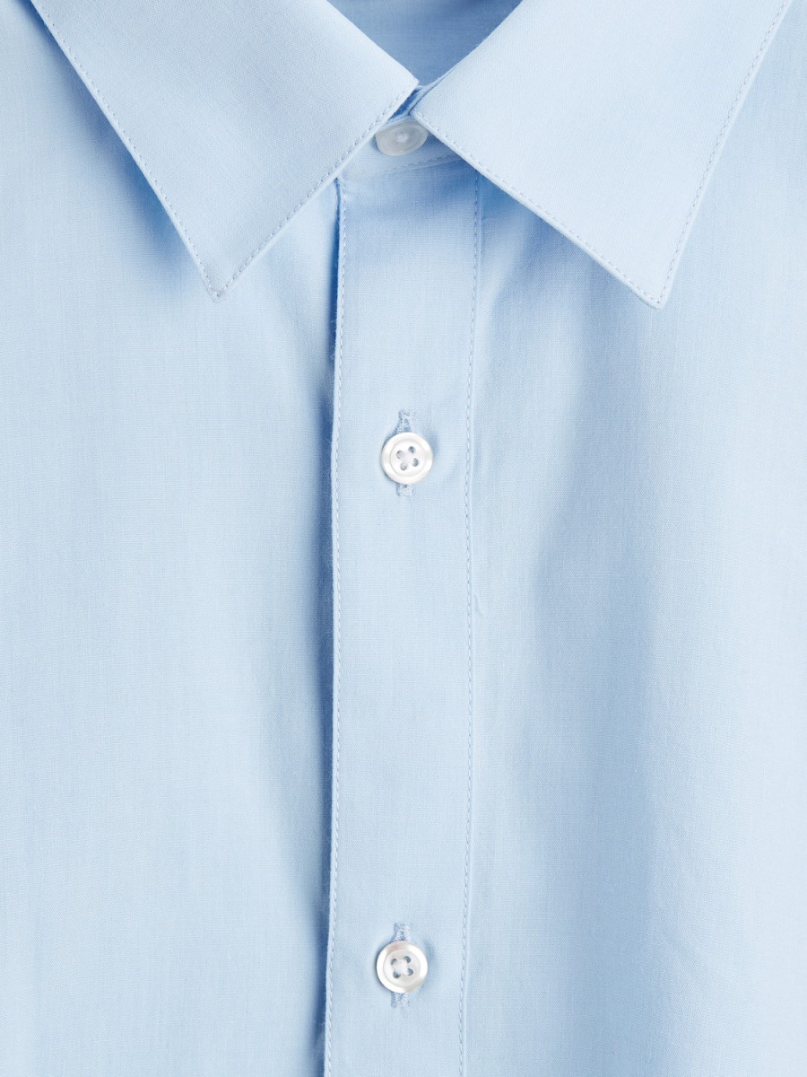 Ampliar -Tipo de detalle : Camisa casual. -Tejido : Popelín. -Cierre/abertura : Cierre con botones. -Otros bolsillos : Bolsillo en el pecho. -Ocasión/estilismo : Camisa de calidad para uso diario. -AJUSTE : Corte Ajustado. -Cuello : Cuello Mao. -MANGA : Manga larga (L/S).