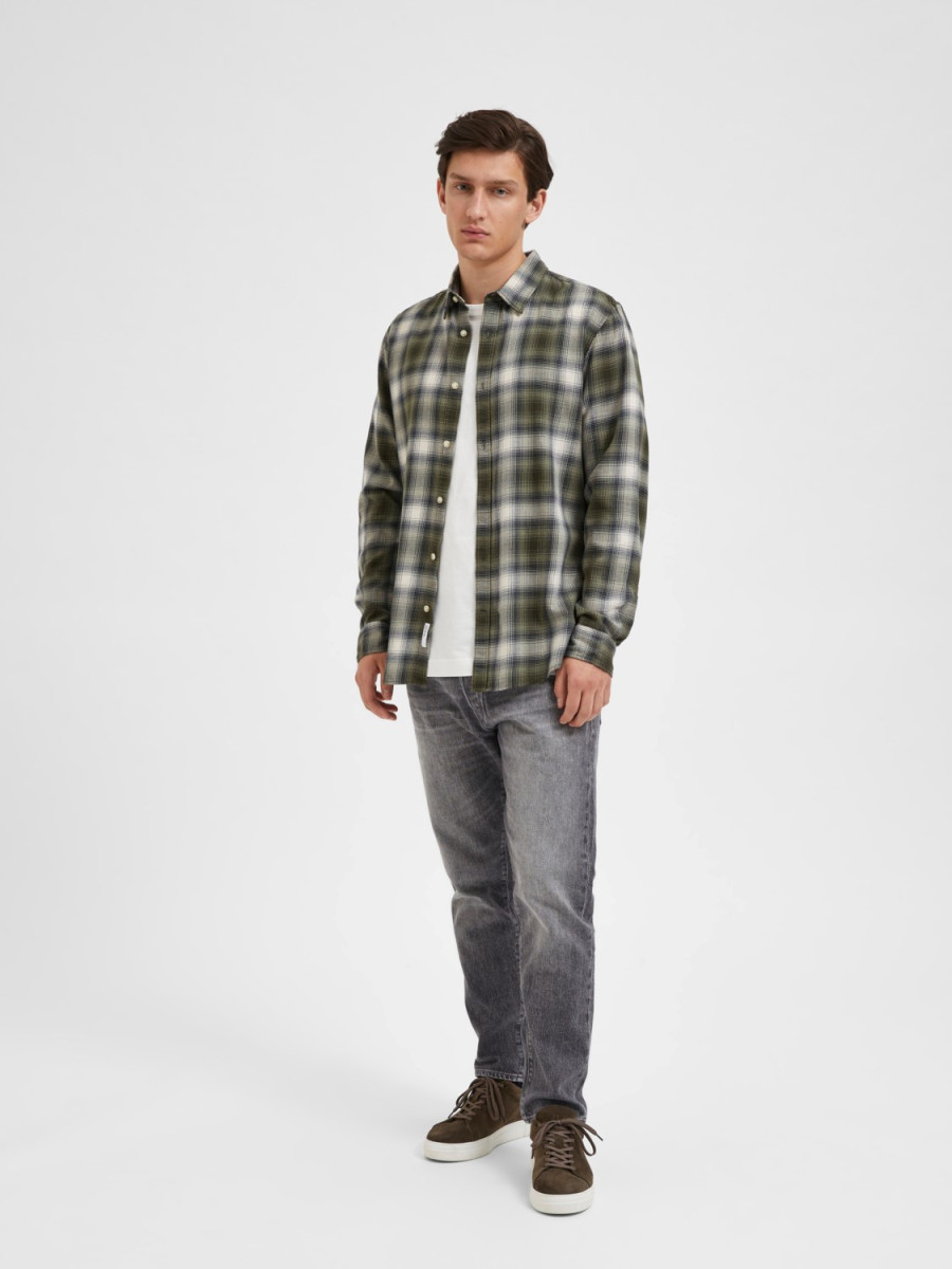 Ampliar -Corte ENTALLADO. -Camisa de manga larga. -Estilo de campaña. -Paquete de camisas de cuadros. -50% algodón orgánico. -50% BCI BLANCO.
