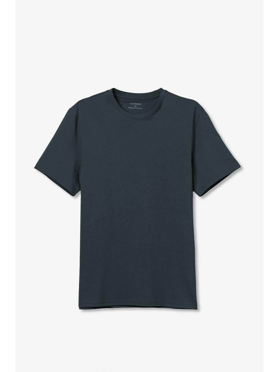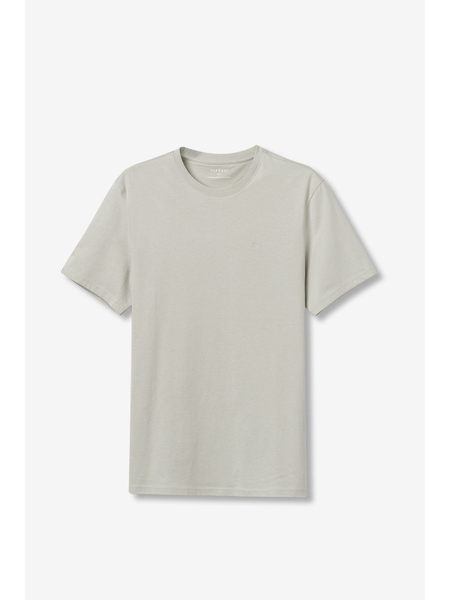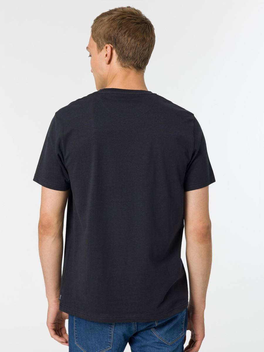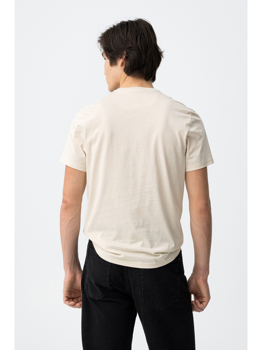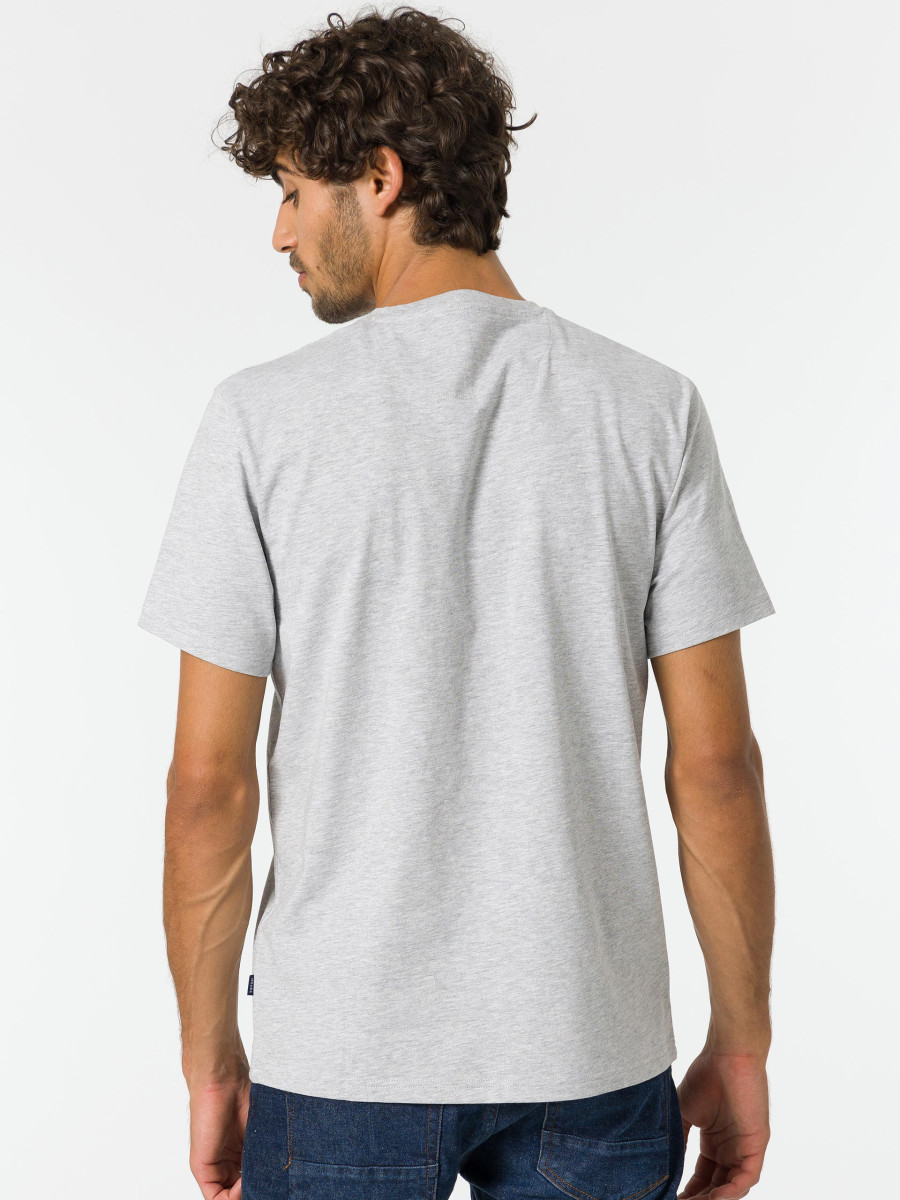 Ampliar Camiseta de cuello redondo y manga corta. Cuello en canalé. Detalle estampado delantero con relieve. Altura Modelo: 188 cm | Talla: M