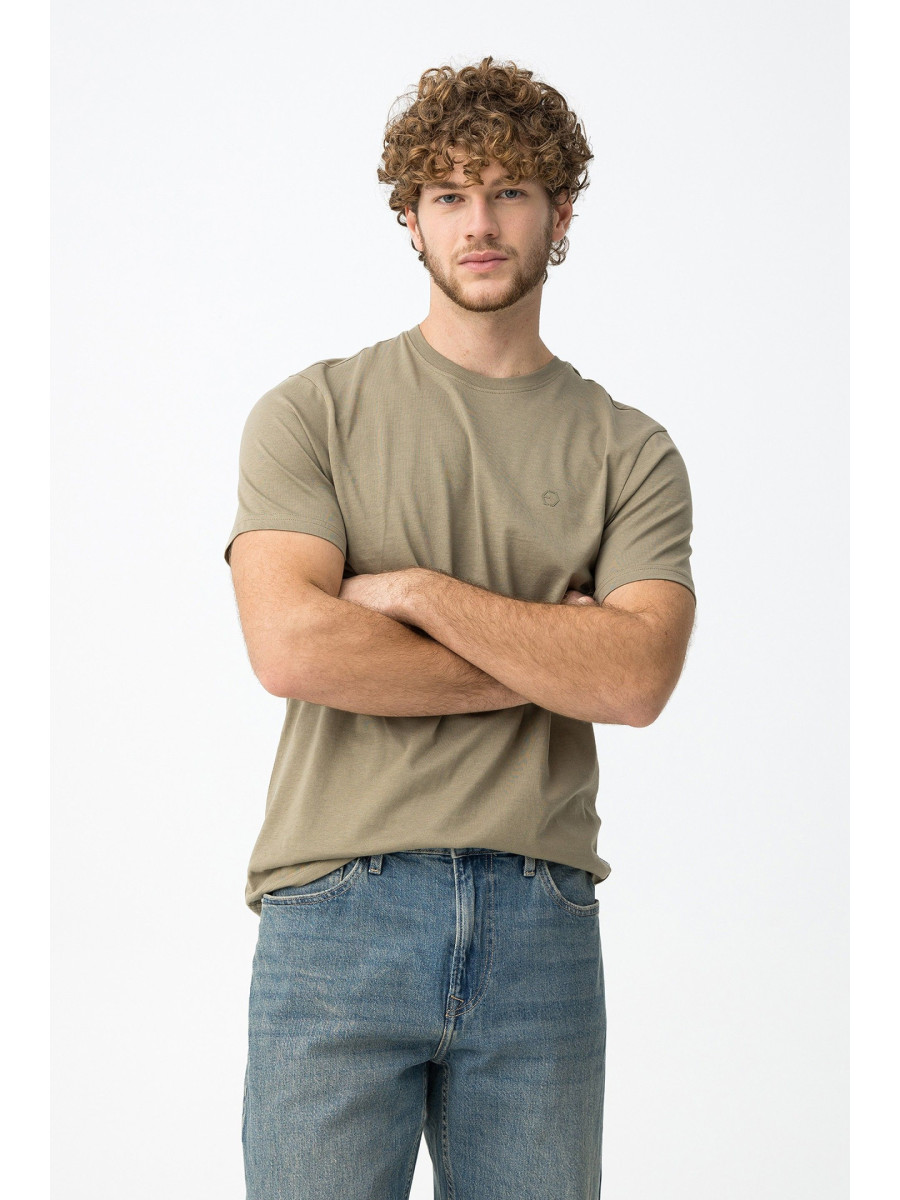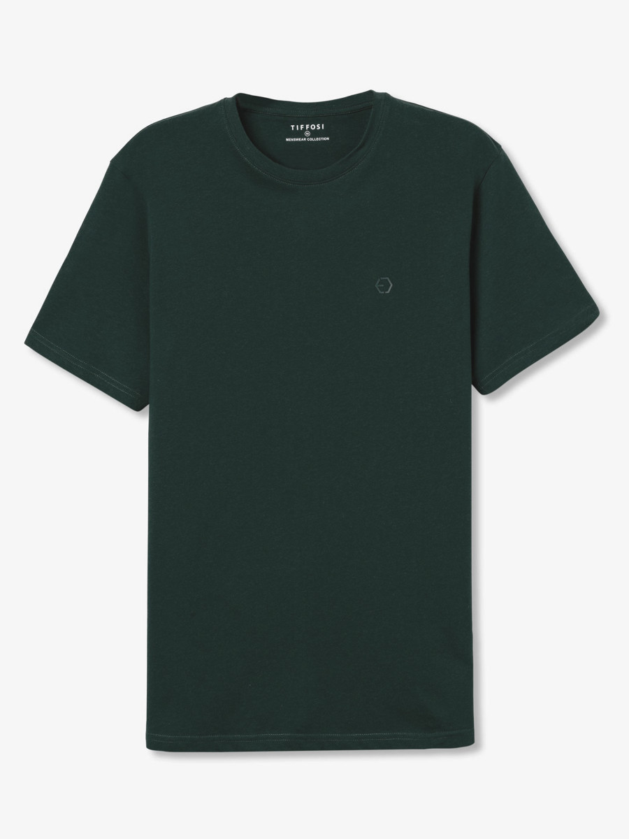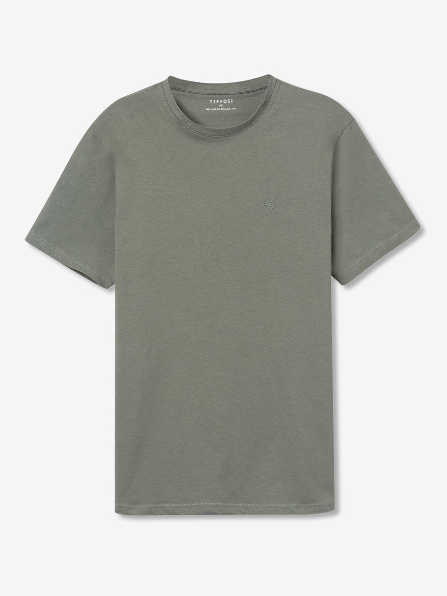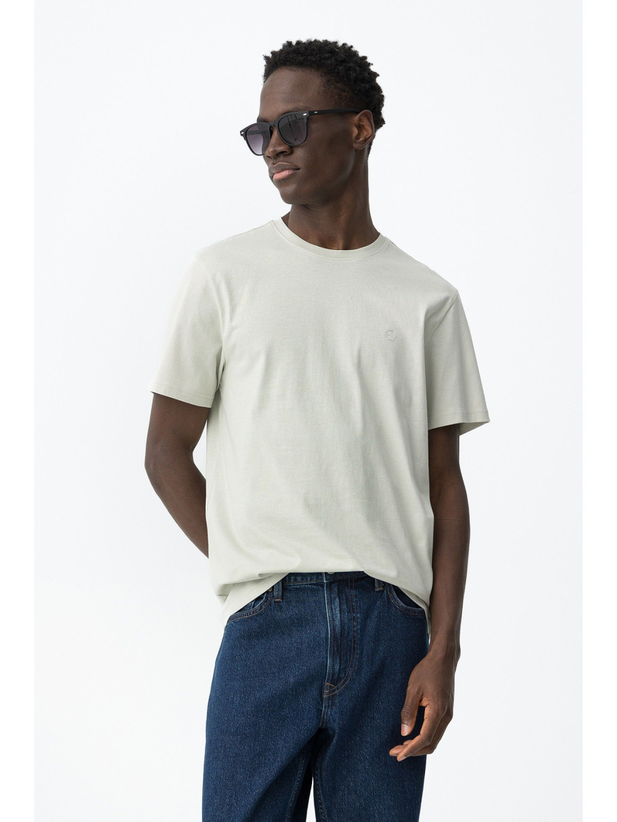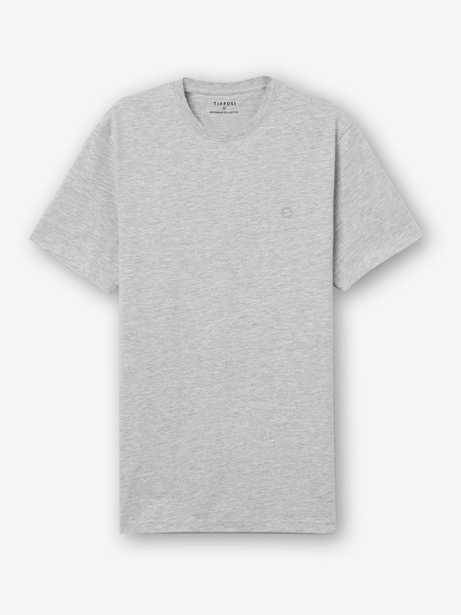 Ampliar Camiseta de cuello redondo y manga corta. Cuello en canalé. Detalle estampado delantero con relieve. Altura Modelo: 188 cm | Talla: M