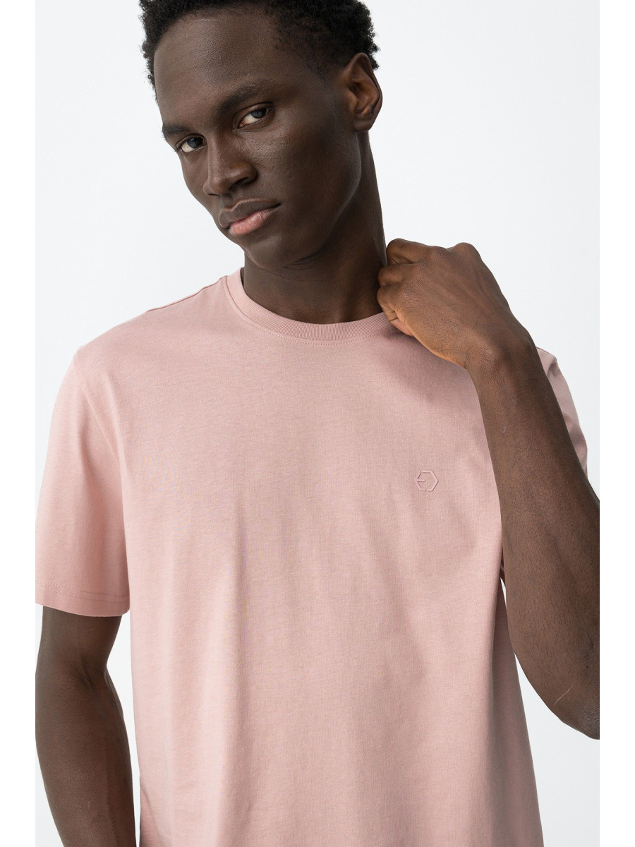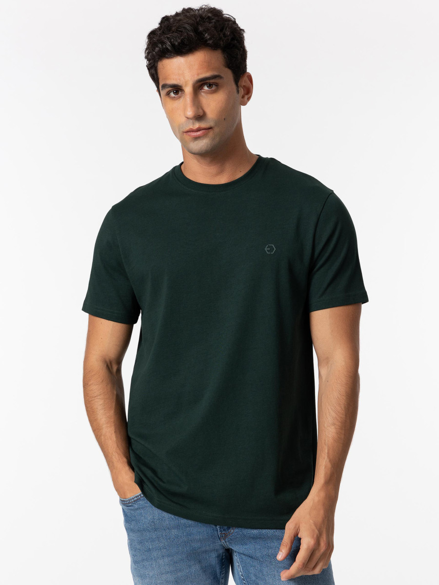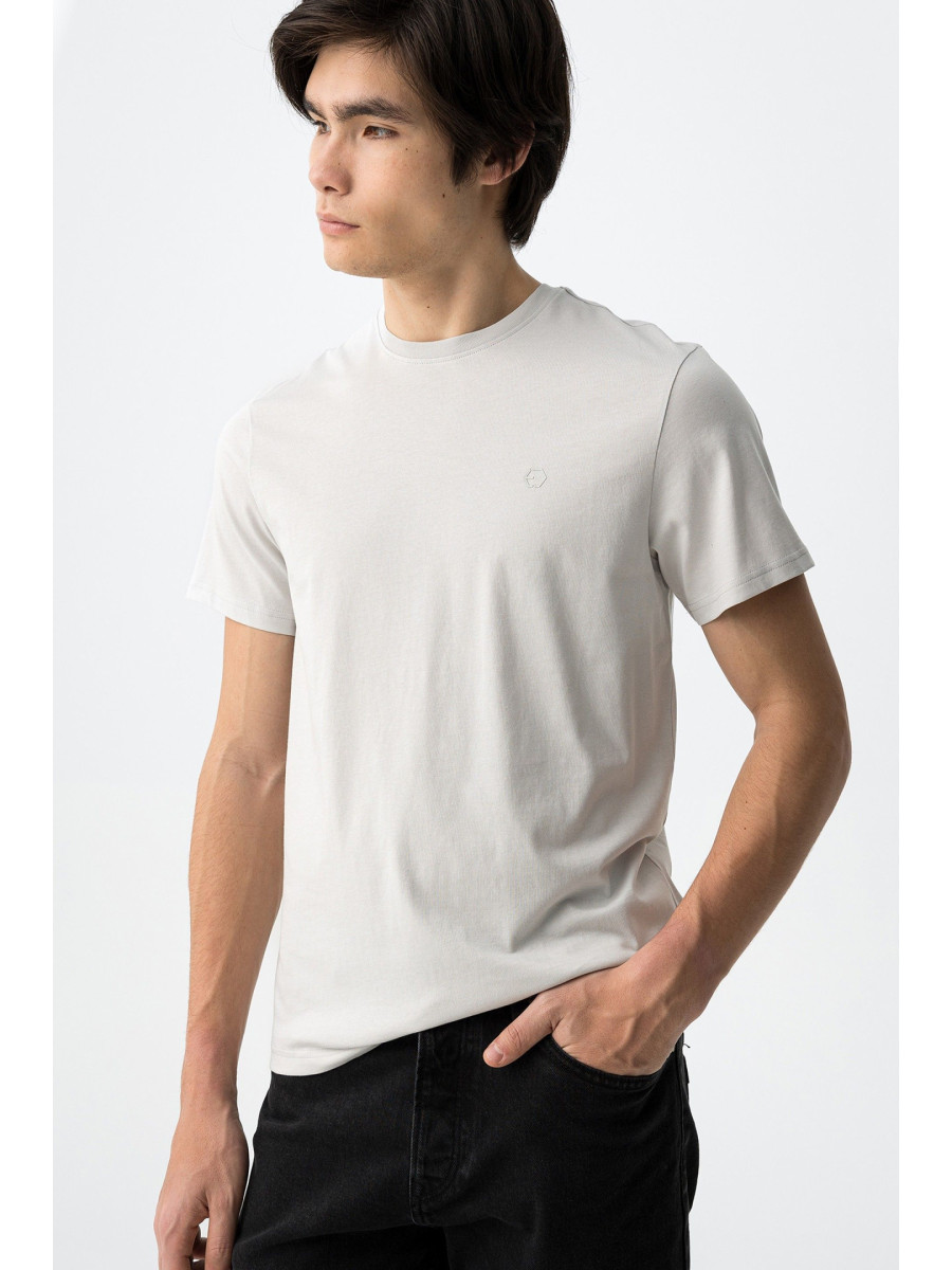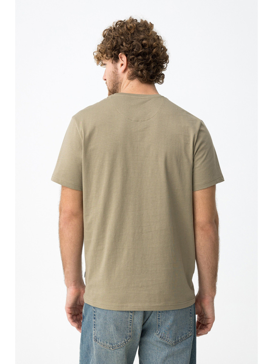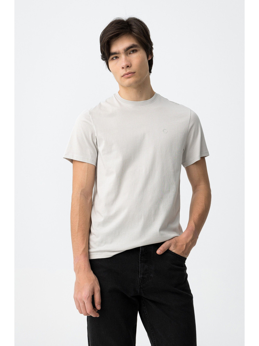 Ampliar Camiseta de cuello redondo y manga corta. Cuello en canalé. Detalle estampado delantero con relieve. Altura Modelo: 188 cm | Talla: M