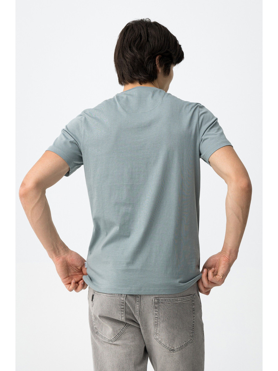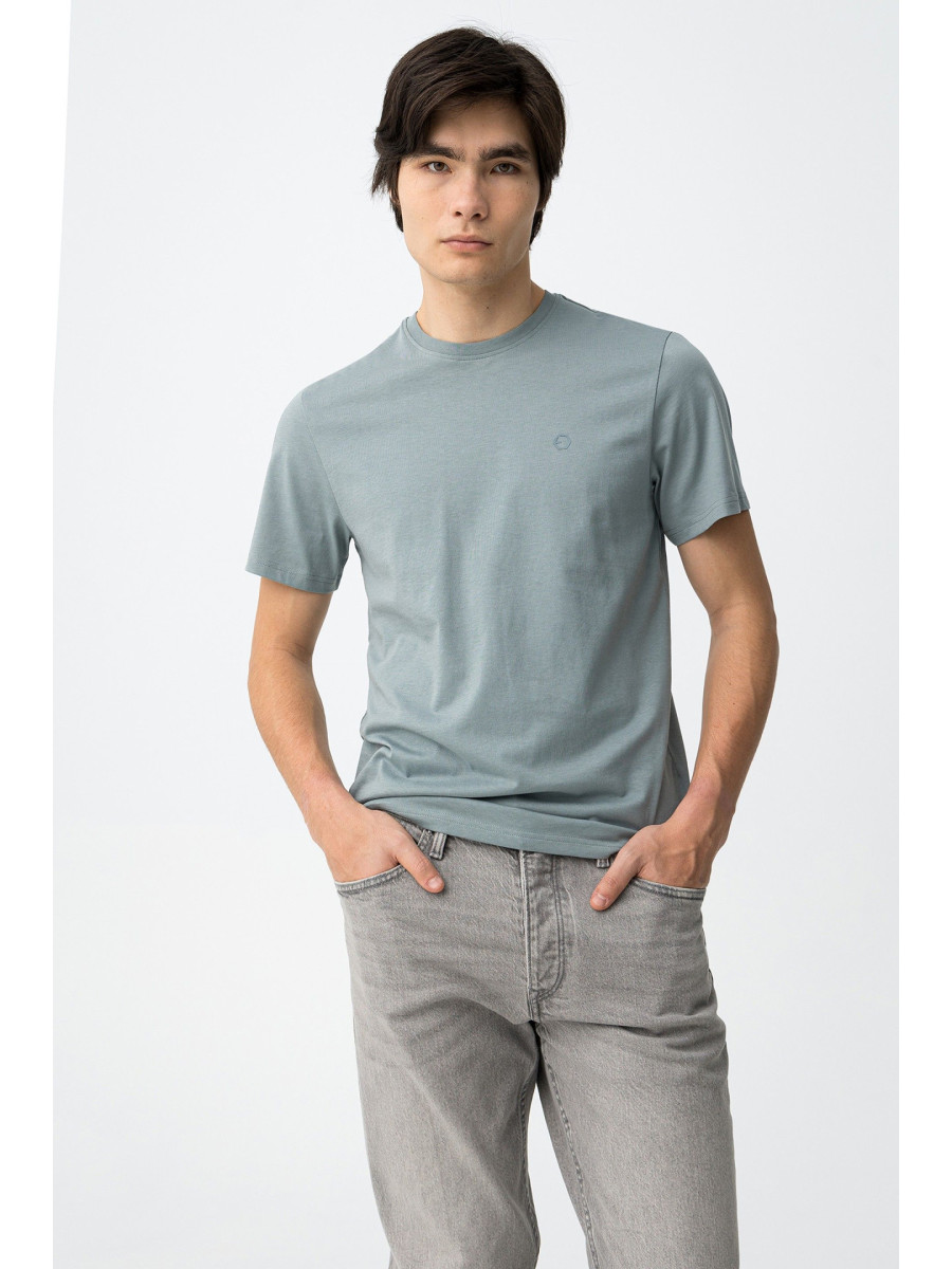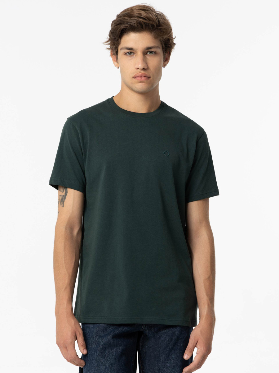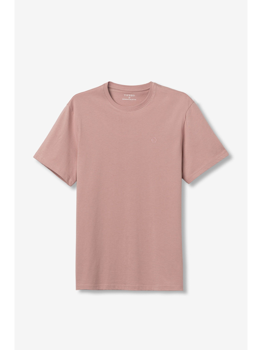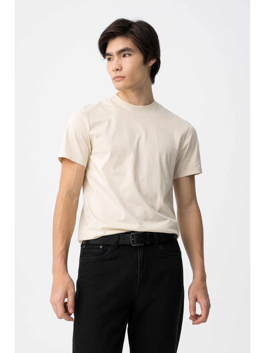 Ampliar Camiseta de cuello redondo y manga corta. Cuello en canalé. Detalle estampado delantero con relieve. Altura Modelo: 188 cm | Talla: M