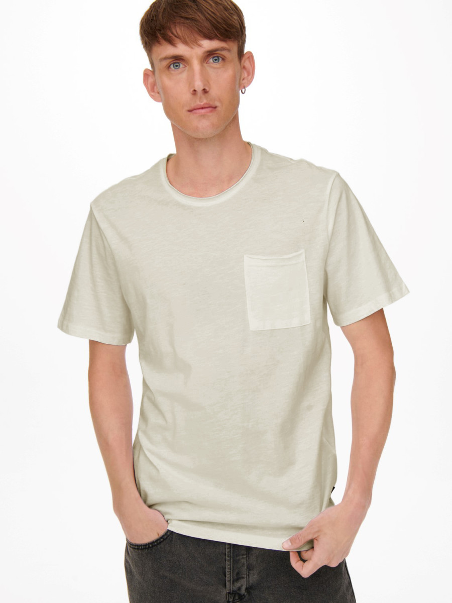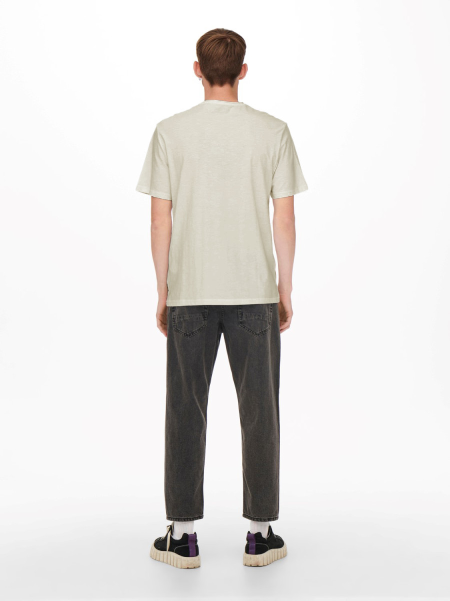 Ampliar Tejido algodonoso confeccionado con dos hilos diferentes para crear una textura afelpada. -Tipo de detalle: Camiseta. -Cuello: Cuello redondo. -Manga: Manga corta (S/S). -Ajuste: Ajuste regular.