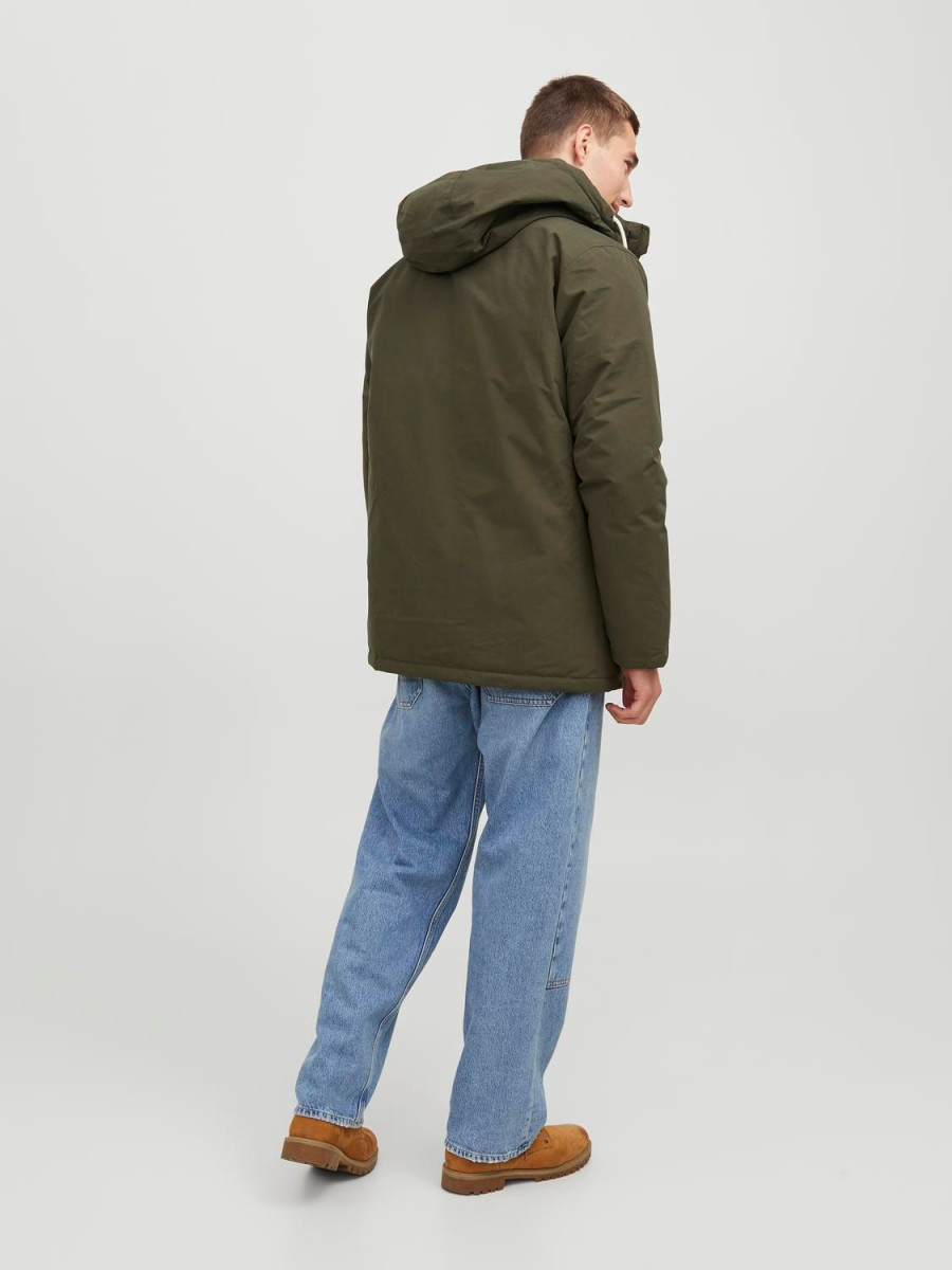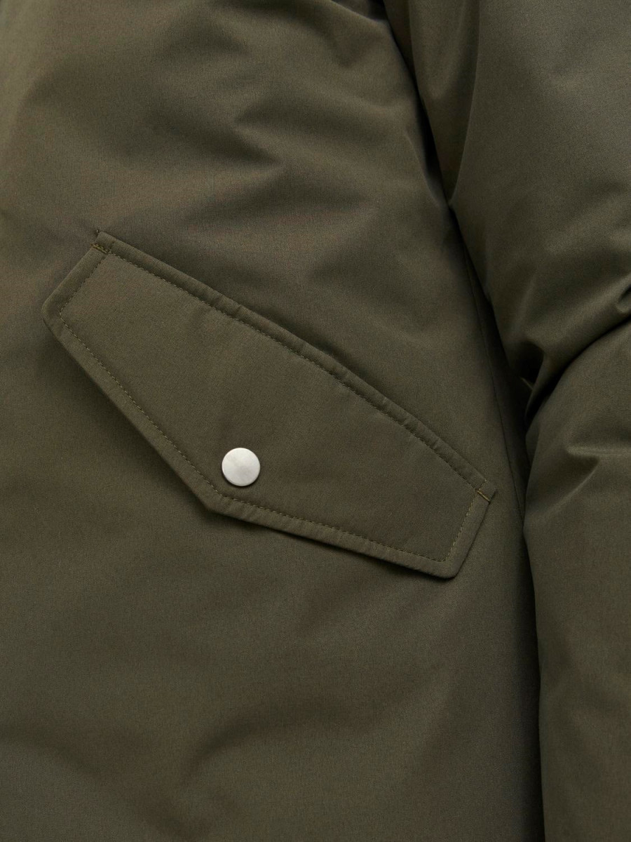 Ampliar Tejido de superficie mate. -Tipo de producto: Parka. -Cuello: Capucha con Cordón de Regulación. -Manga: Manga Larga (L/S). -Puños: Puños de canalé. -Cierre: Cierre con cremallera. -Largo/Talla: Corto. -Forro: Forro de poliéster reciclado para un tacto confortable. -Acolchado: Relleno de plumón de fibra sintética para una sensación de ligereza y calidez. -Funcionalidad: Resistente al agua.
