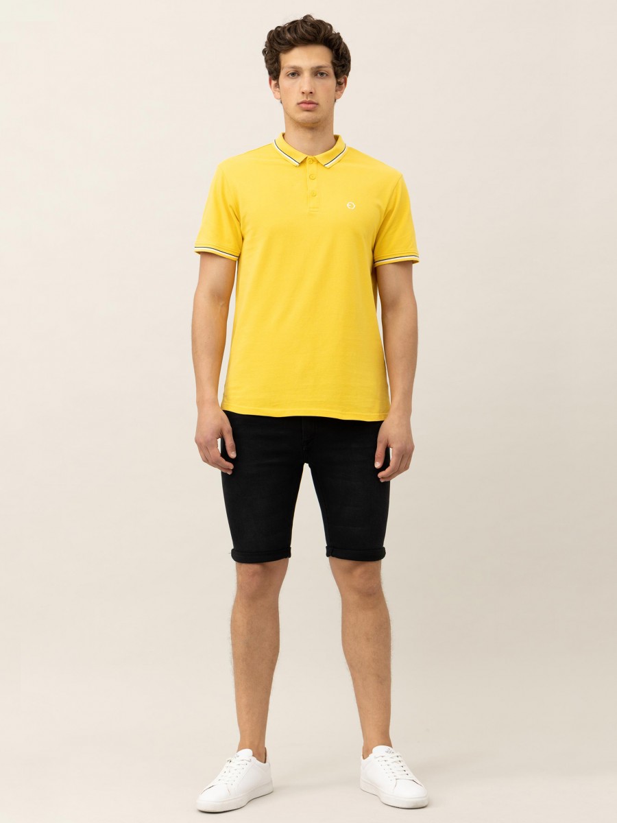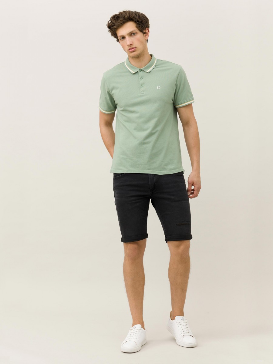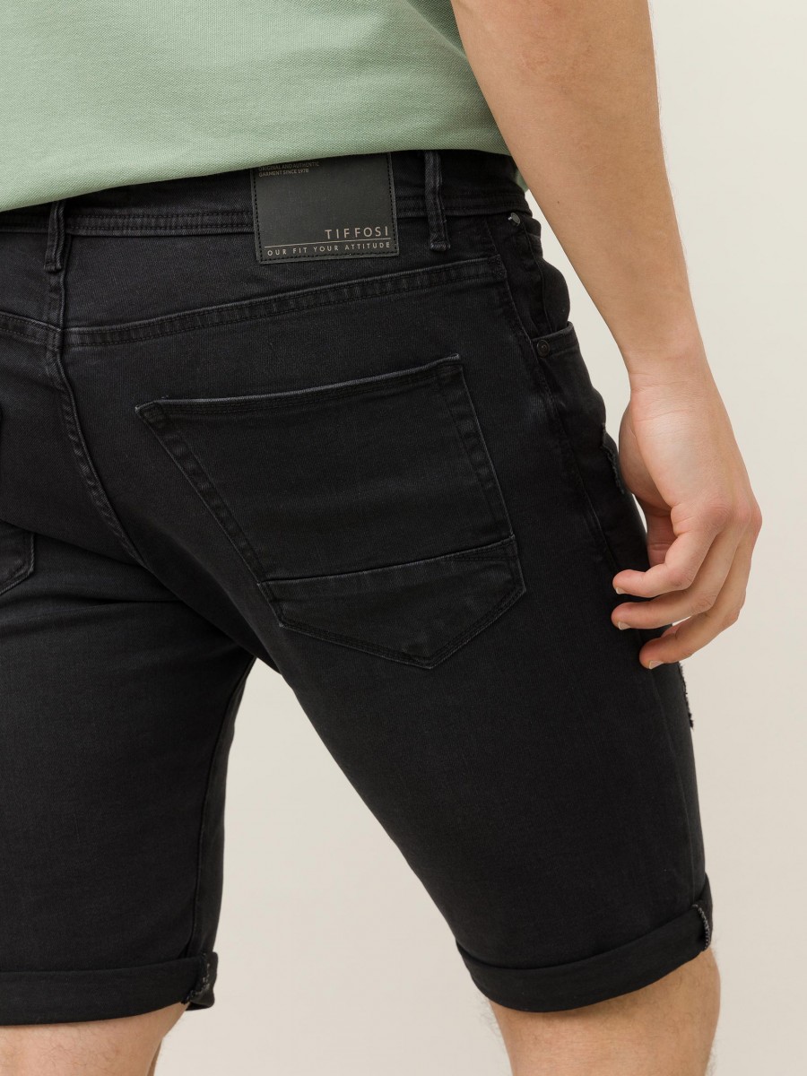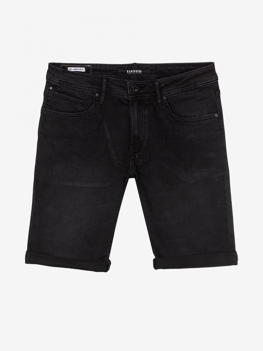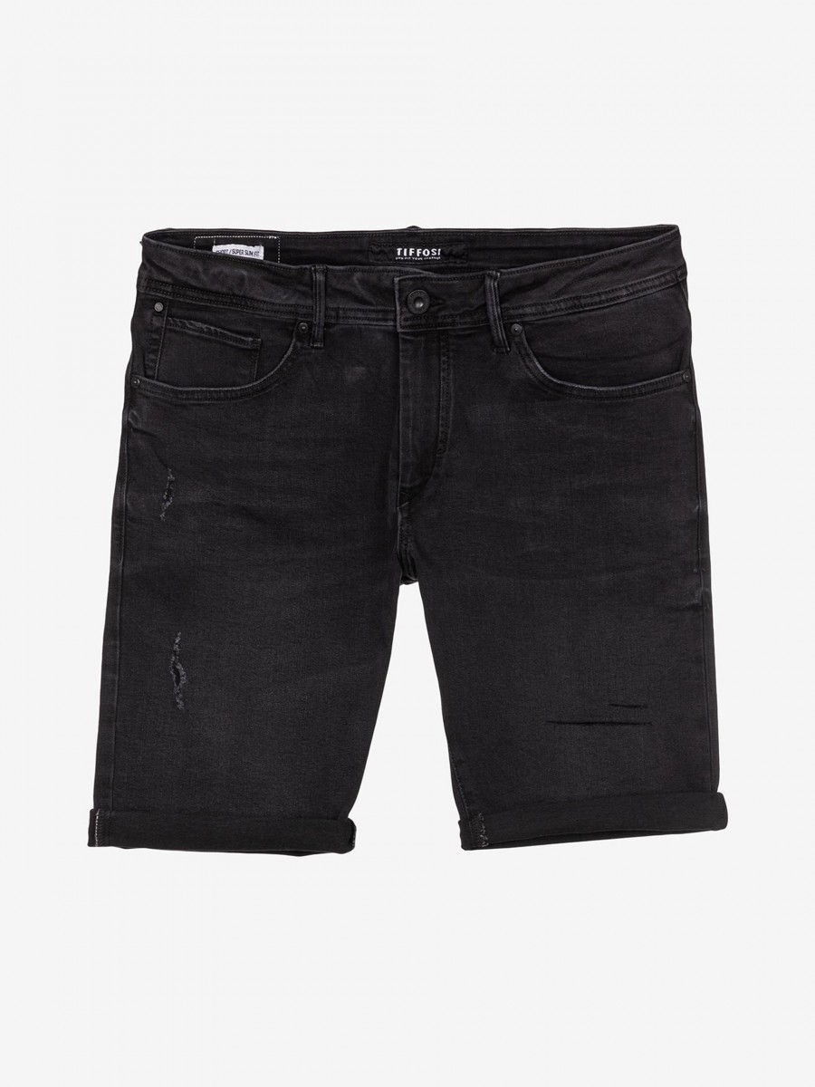 Ampliar -Bermuda vaquera con cinco bolsillos. -Cierre frontal con cremallera y botón metálico.