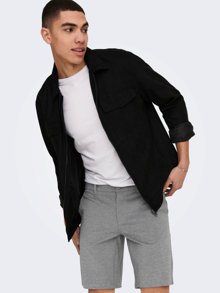 Ampliar -Tipo de detalle: Pantalones cortos chinos. -Cierre: Bragueta con cremallera. -Cintura: Media. -Largo/Talla: Por encima de la rodilla. -Detalles adicionales: Trabillas para cinturón, estilo de inspiración china. -Ajuste: Corte Regular.