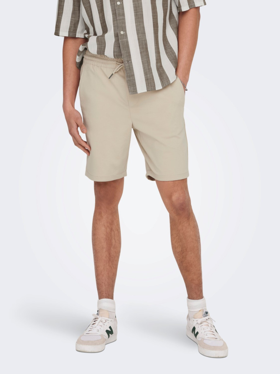Ampliar Fabricado con un suave tejido elástico de alto rendimiento para garantizar un ajuste perfecto y comodidad durante todo el día. -Tipo de detalle: Pantalón corto tipo jogger. -Cierre: Bragueta con detalle de pespuntes. -Corte : Regular Fit. -Tipo de cierre : Cordón sin fijar.