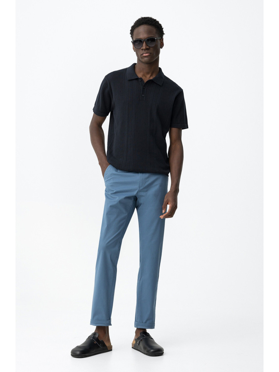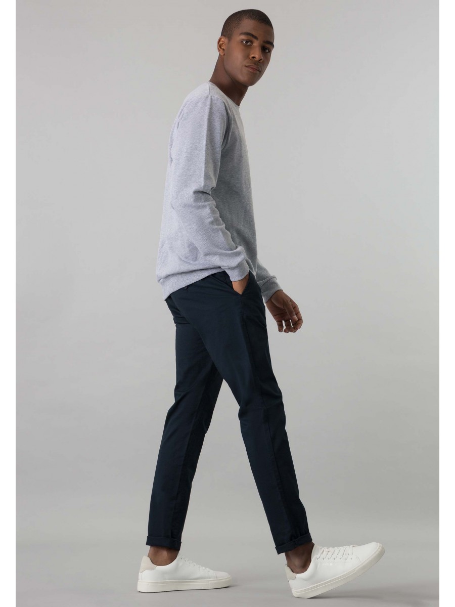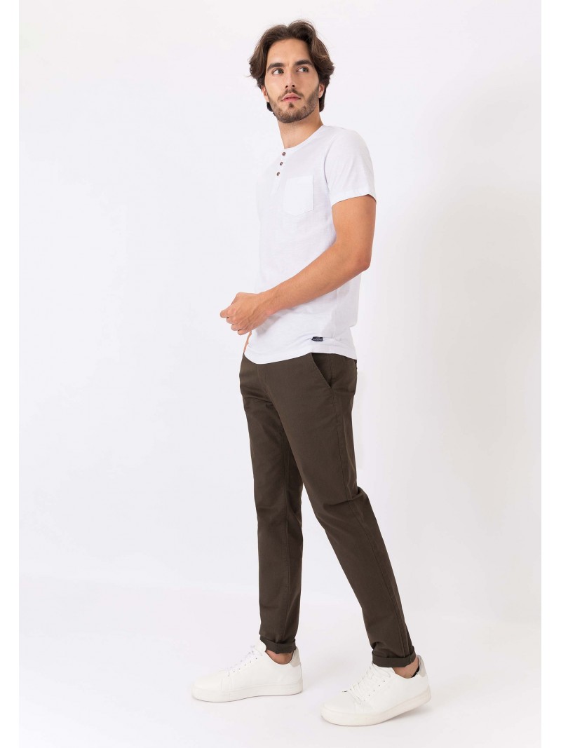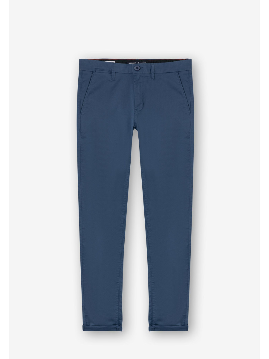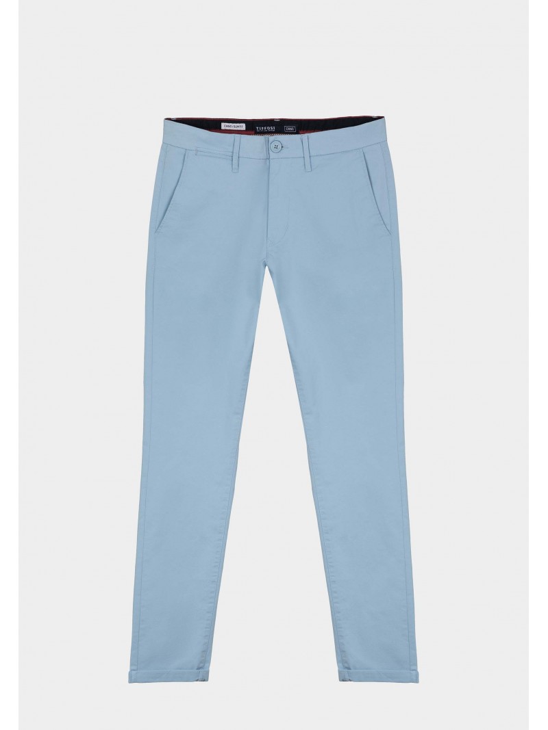 Ampliar -Pantalón slim fit con cinco bolsillos. -Cierre frontal con cremallera y botón.