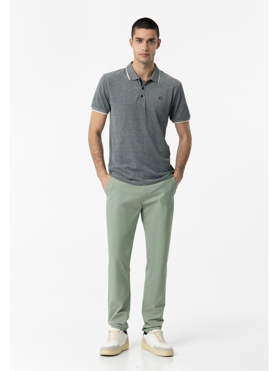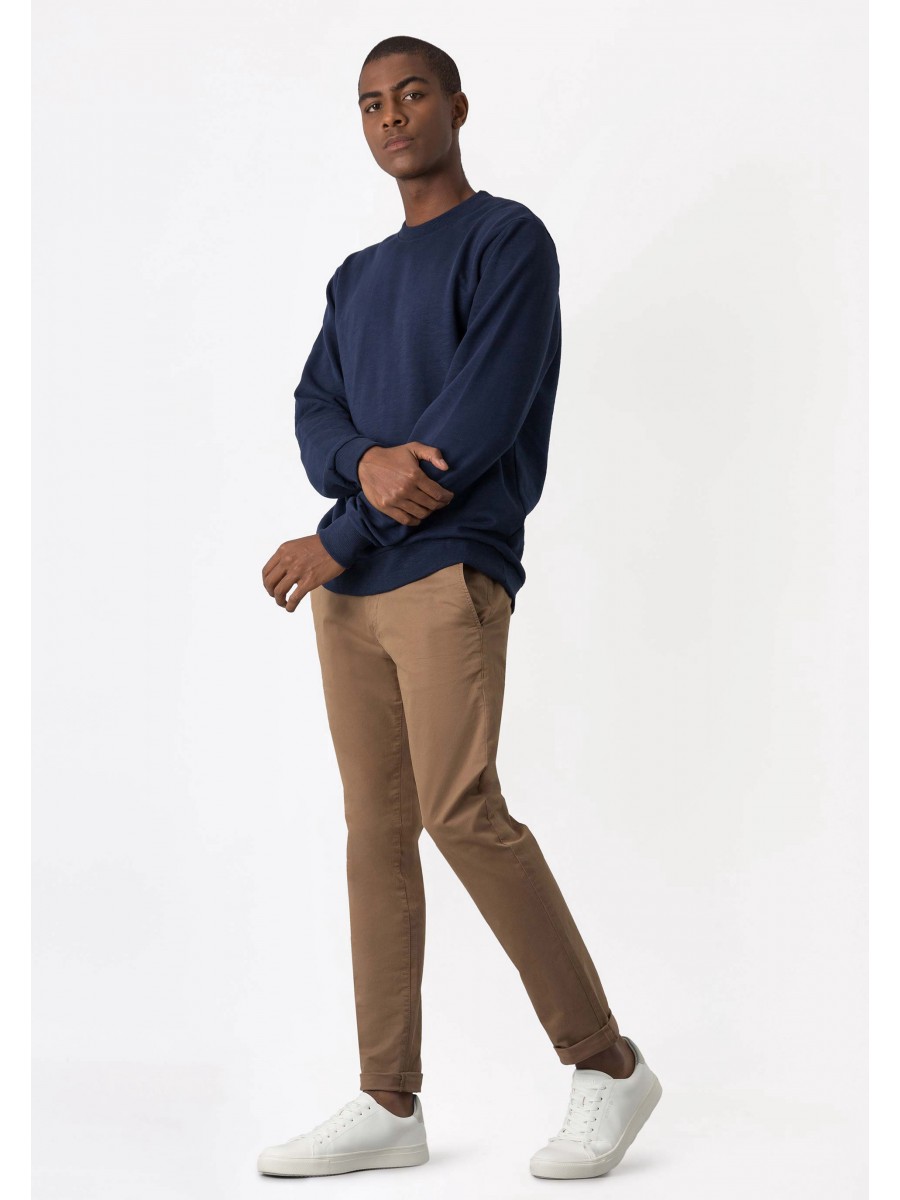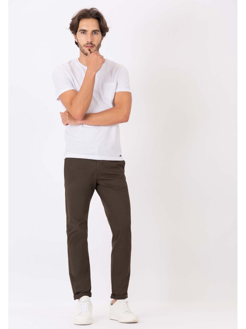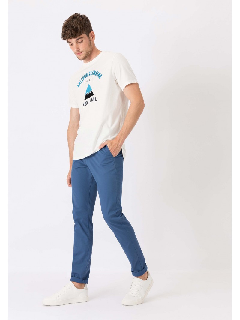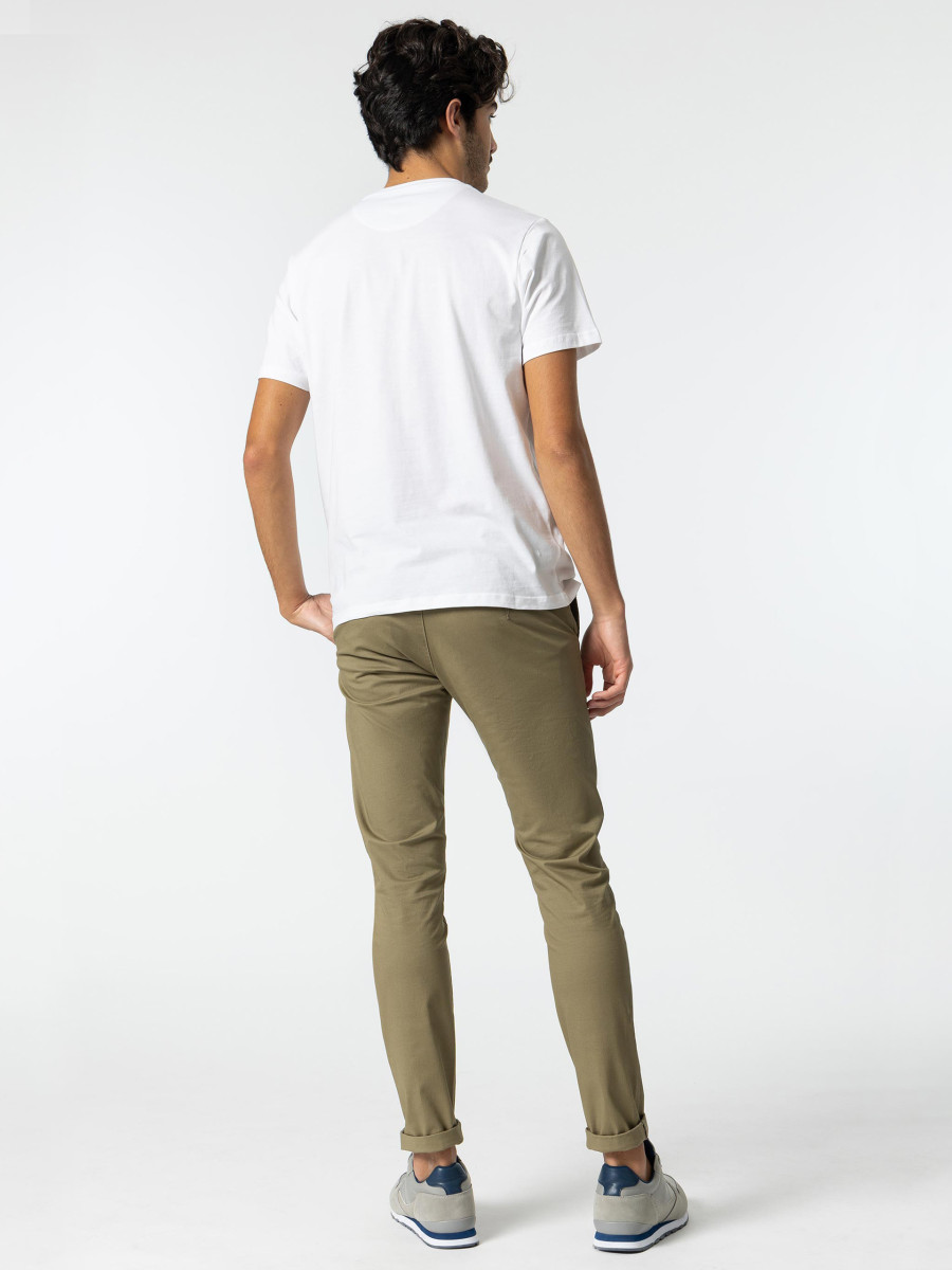 Ampliar -Pantalón slim fit con cinco bolsillos. -Cierre frontal con cremallera y botón.