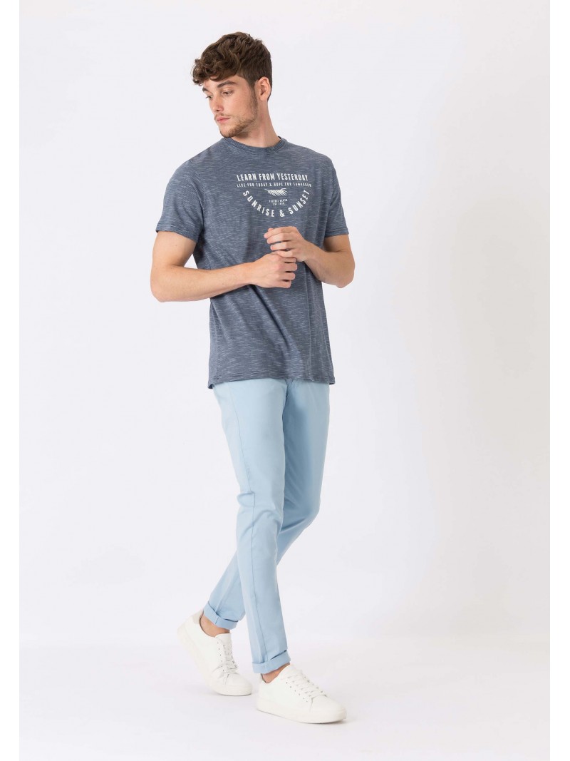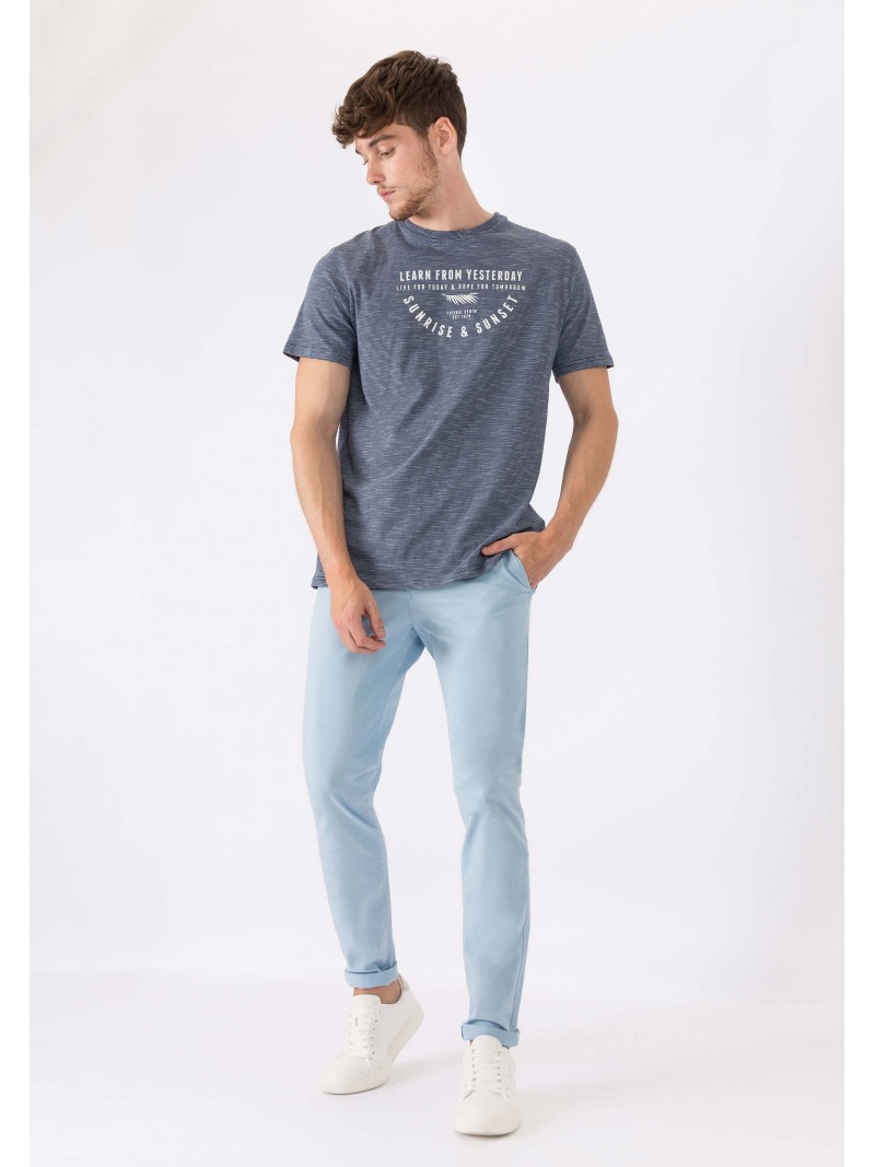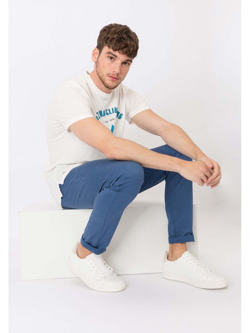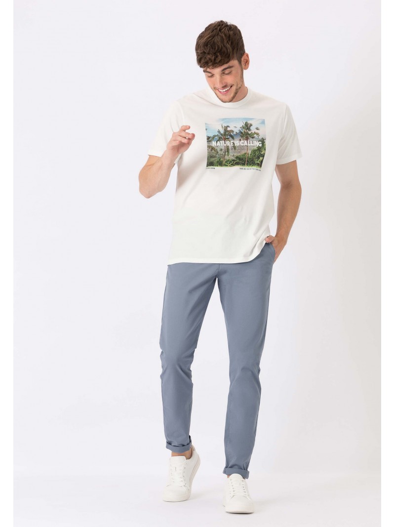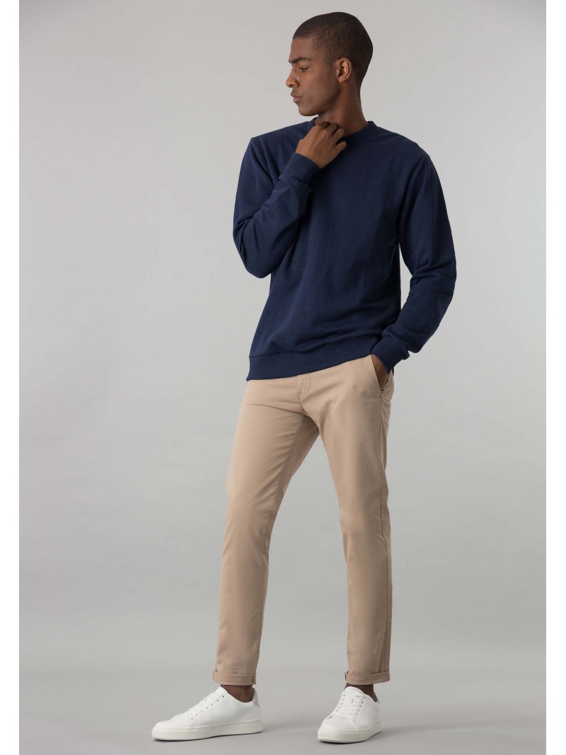Ampliar -Pantalón slim fit con cinco bolsillos. -Cierre frontal con cremallera y botón.