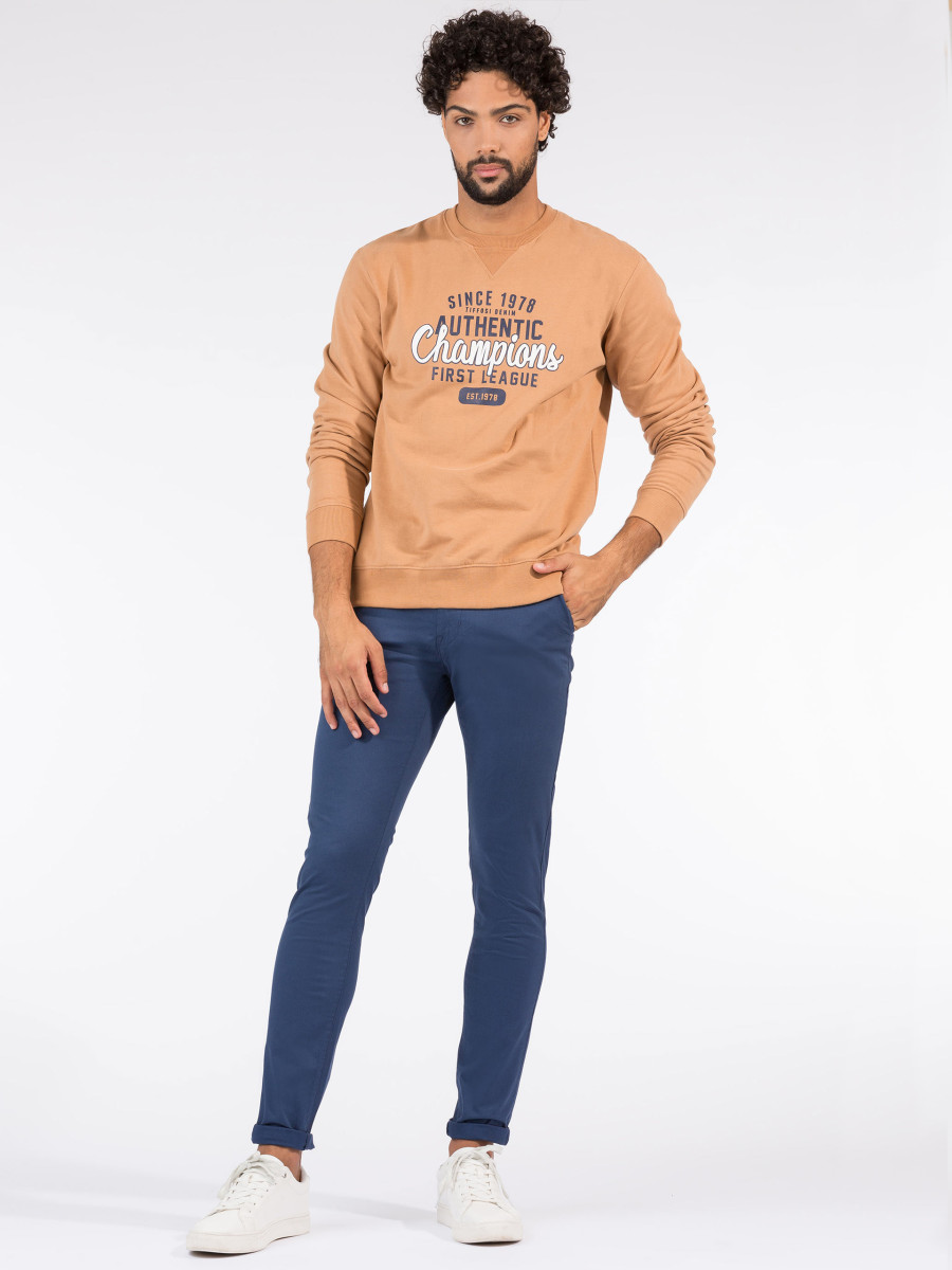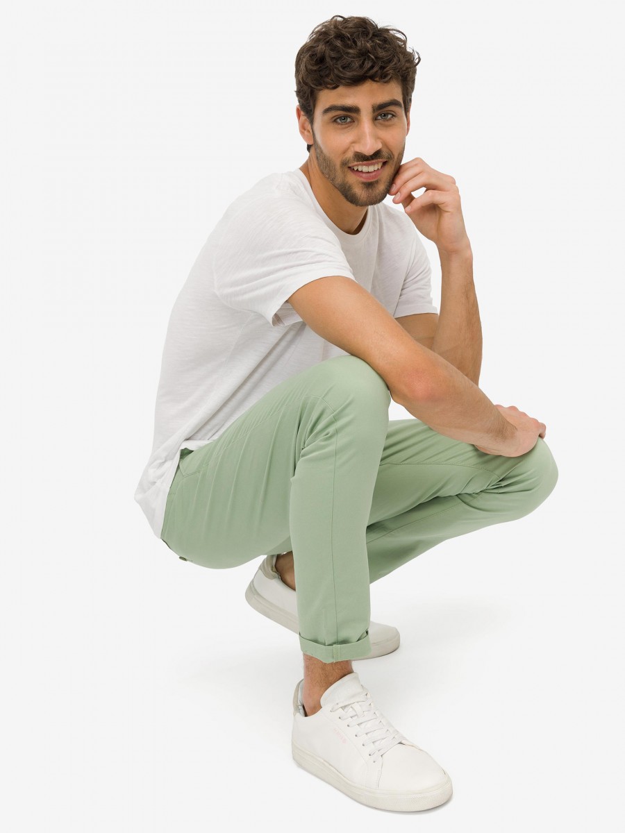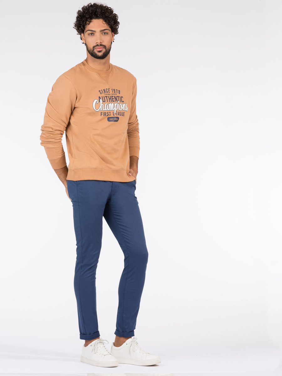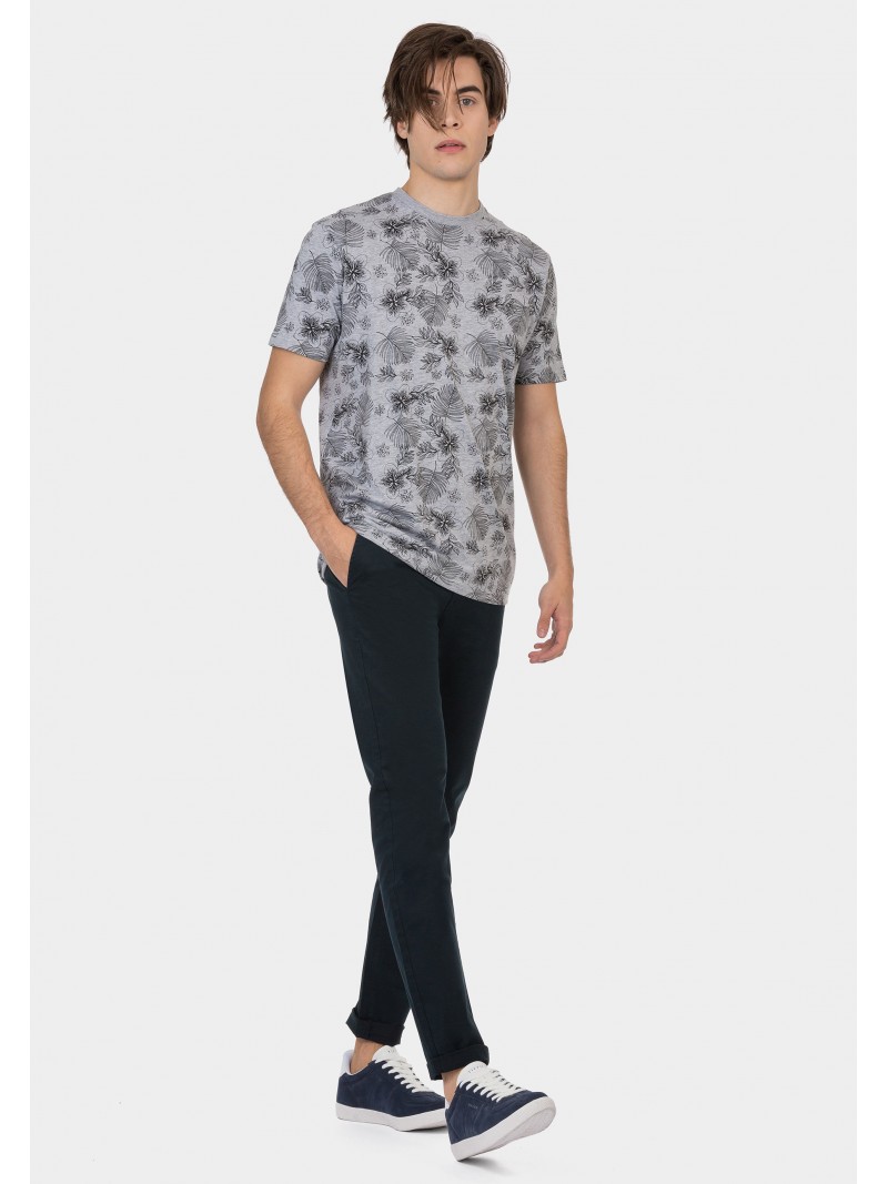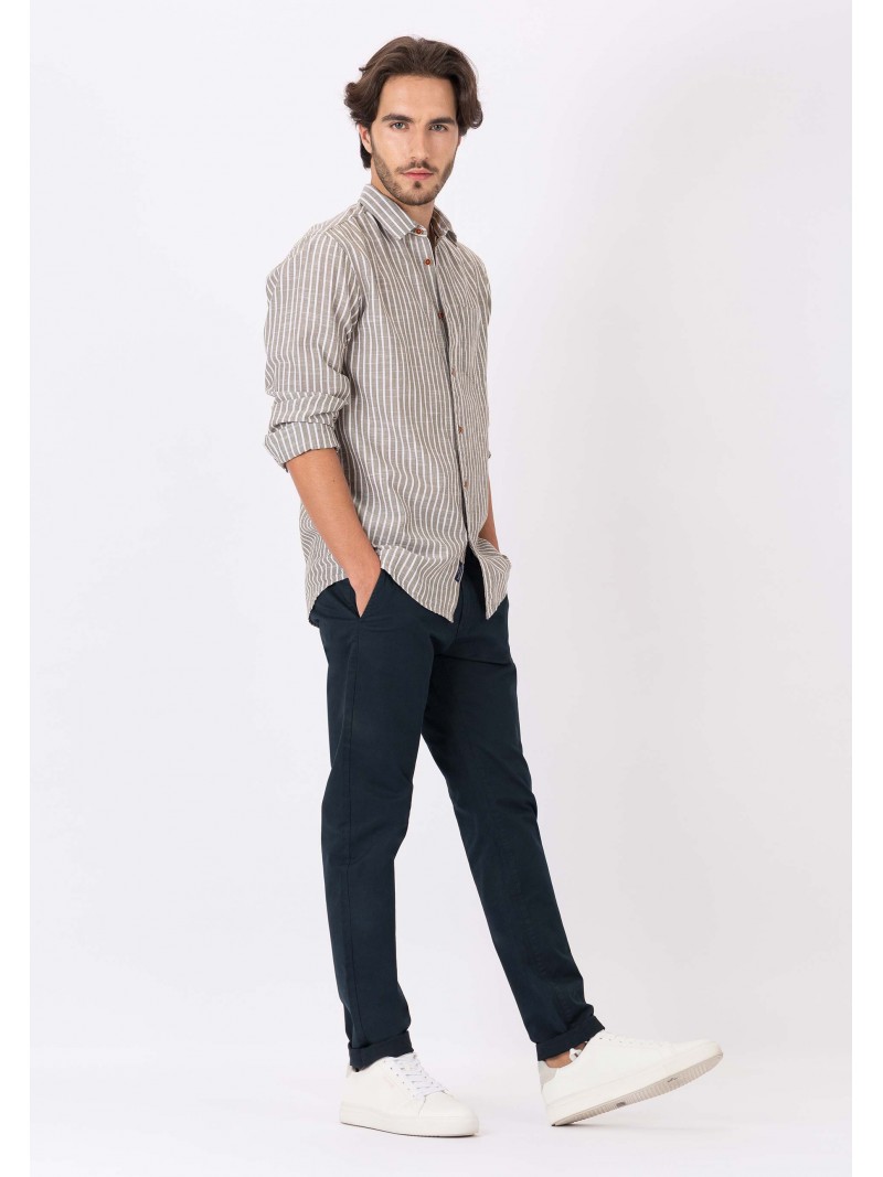 Ampliar -Pantalón slim fit con cinco bolsillos. -Cierre frontal con cremallera y botón.