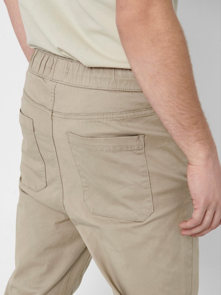 Ampliar - Chinos de color liso. - Cordón en la cintura. - 2 bolsillos laterales. - Canalé elástico en cada pierna. - 2 bolsillos traseros abiertos. - Entrepierna: 75 cm en talla L. - El modelo lleva la talla L