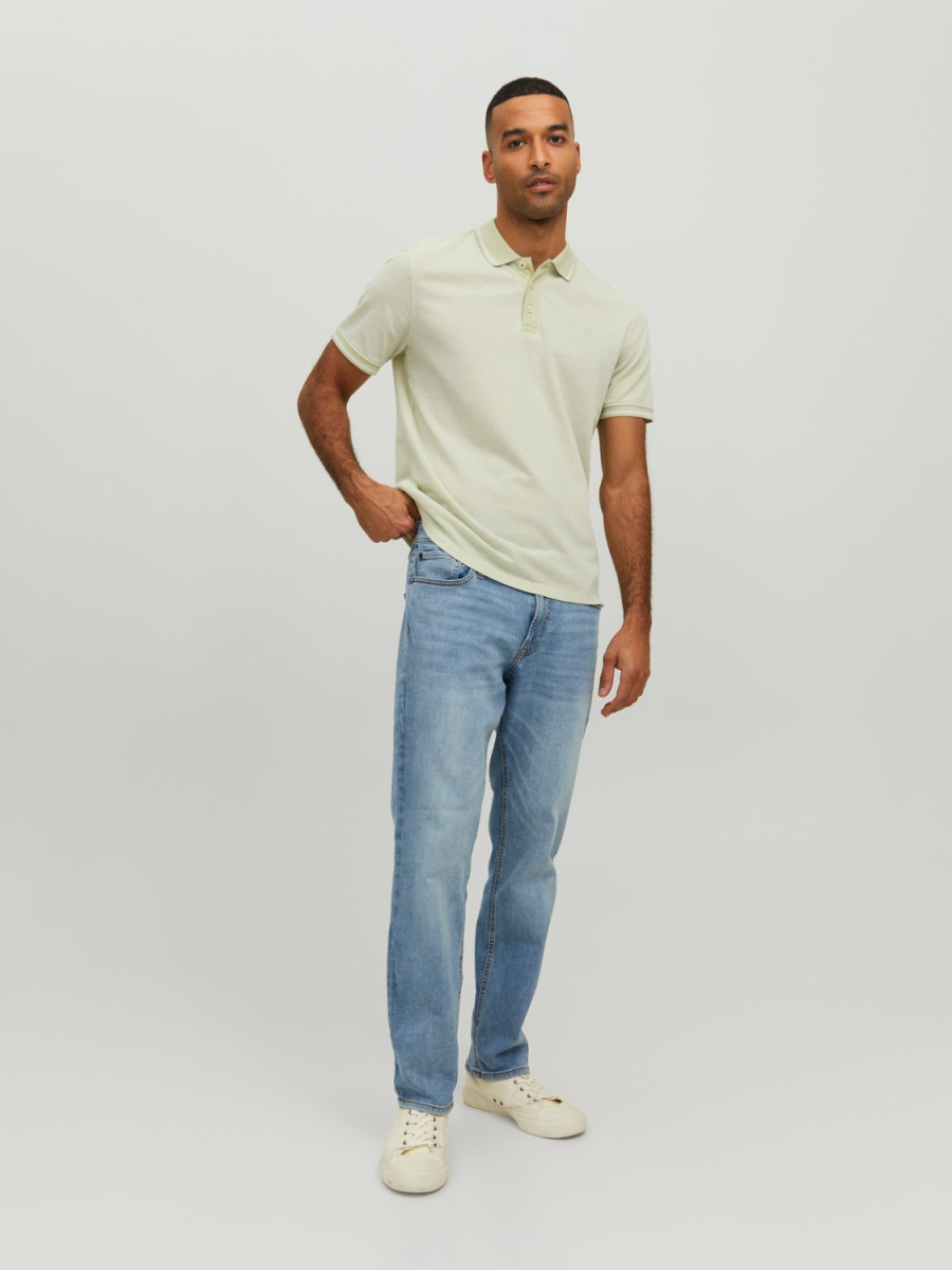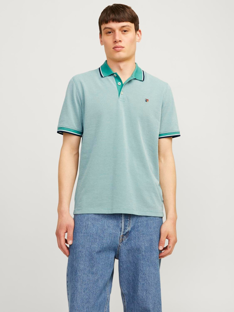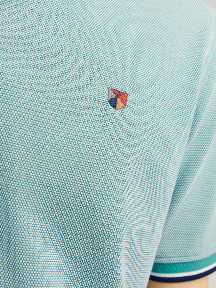 Ampliar -Tipo de detalle: Polo. -Cierre/Volante: Cierre con botones. -Detalles adicionales: Bordado. -Tejido: Tejido con dos hilos diferentes que hace un look bicolor. -Ocasión/Estilo: Camiseta de calidad para llevar a diario. -AJUSTE: Corte Regular. -TIPO DE CUELLO: Polo. -LONGITUD DE MANGA: Manga corta (S/S).
