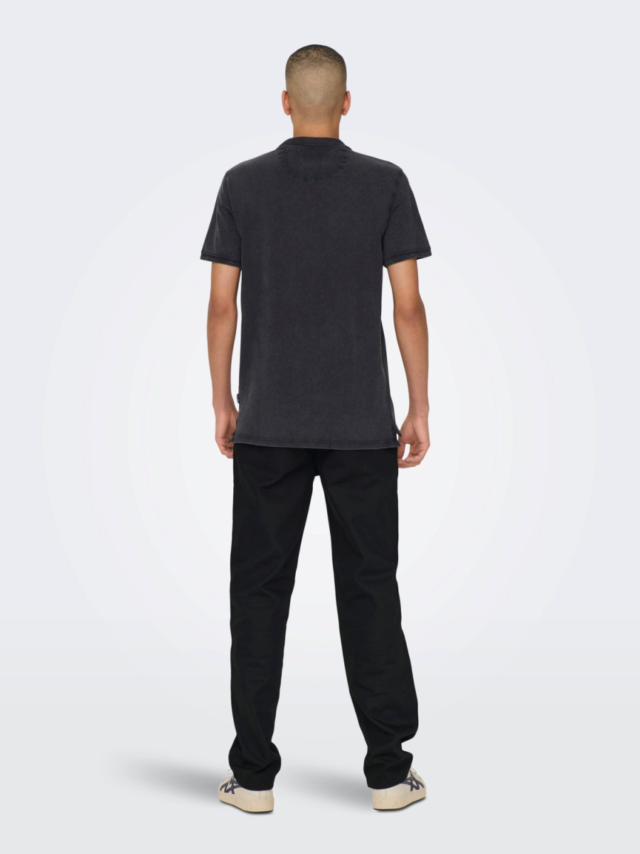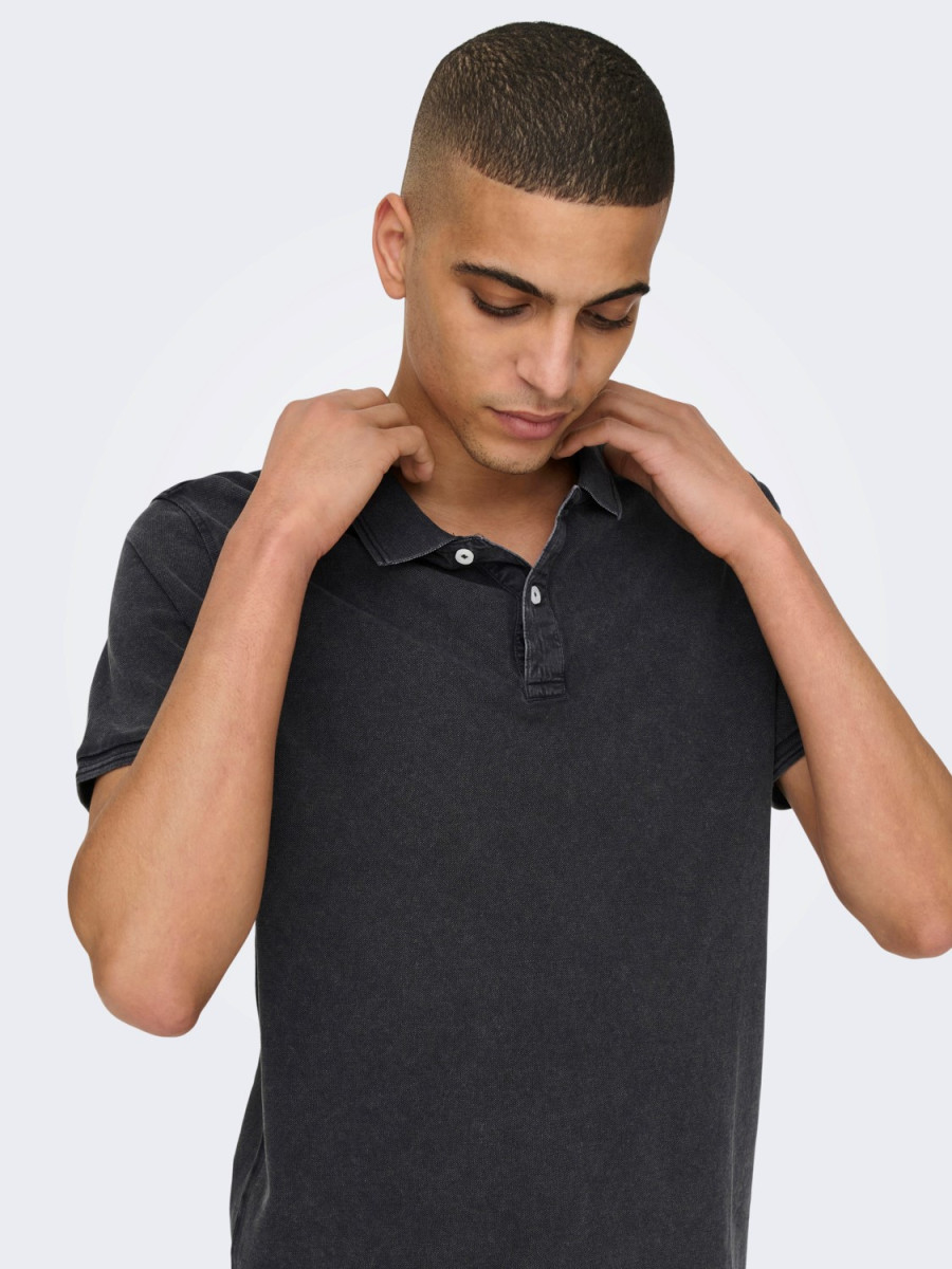 Ampliar -Tipo de detalle: Polo. -Detalles extra: Aberturas laterales. -Cierre/Cuello: Abertura en el cuello con botones. -Acabado lavado: Aspecto lavado intenso. -AJUSTE: Corte ajustado. -CUELLO : Cuello Caja. -MANGA: Mangas Cortas (S/S)
