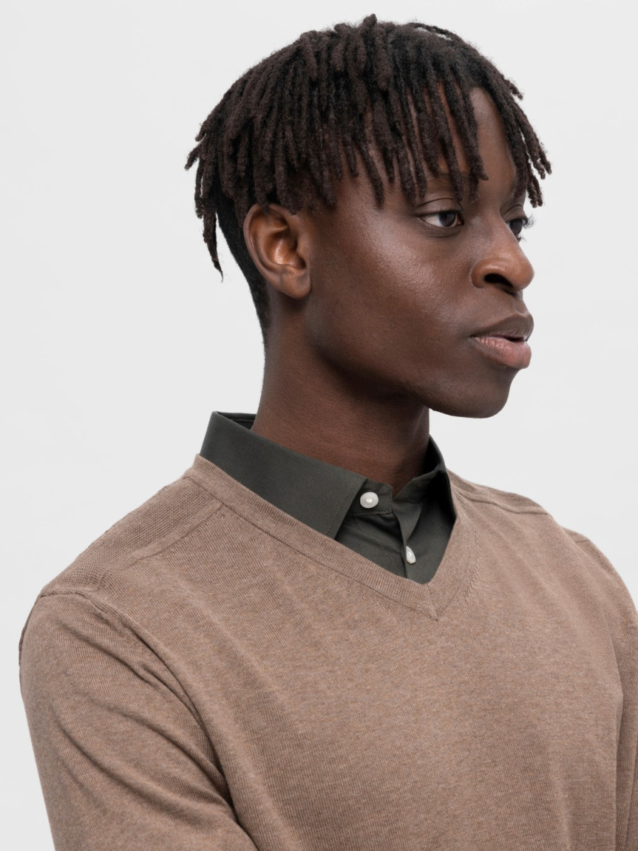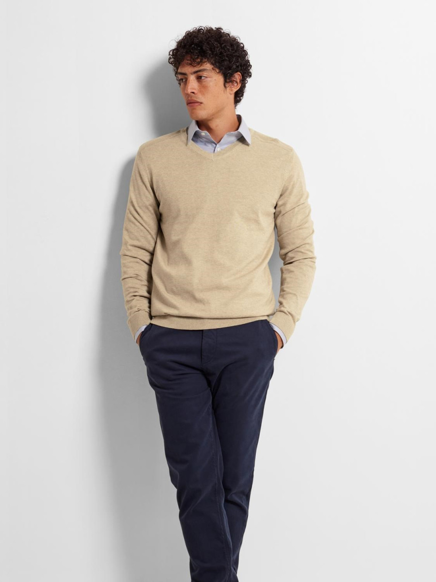 Ampliar -Tipo de detalle: Jersey de punto. -Cuello: Cuello en pico. -Manga: Manga larga (L/S). -Puños: Puños de canalé.